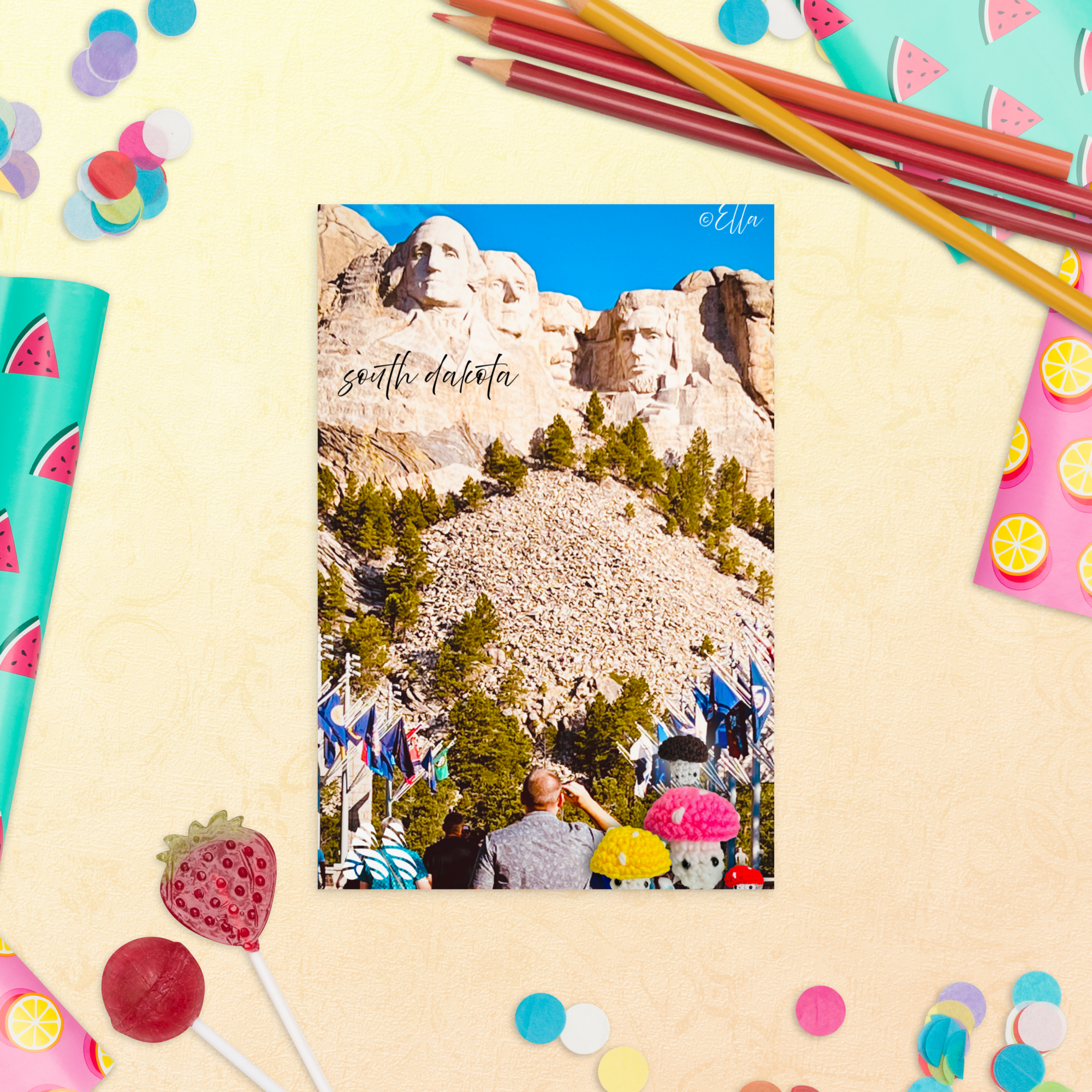 Standard Postcard - 4x6 with Envelope - Family Vacation - South Dakota from the Creative Kids Collection by Ella & the Kate Shu Collective