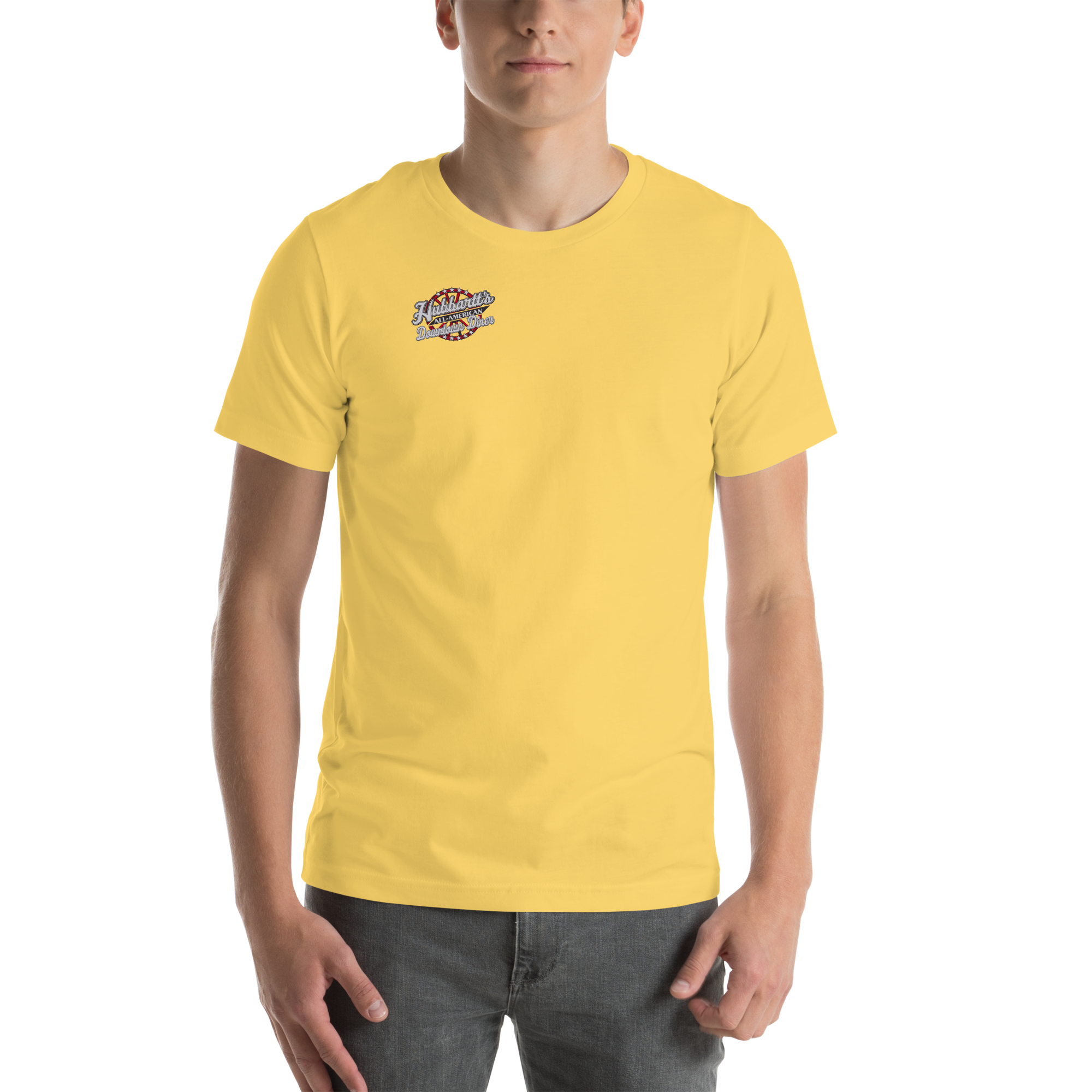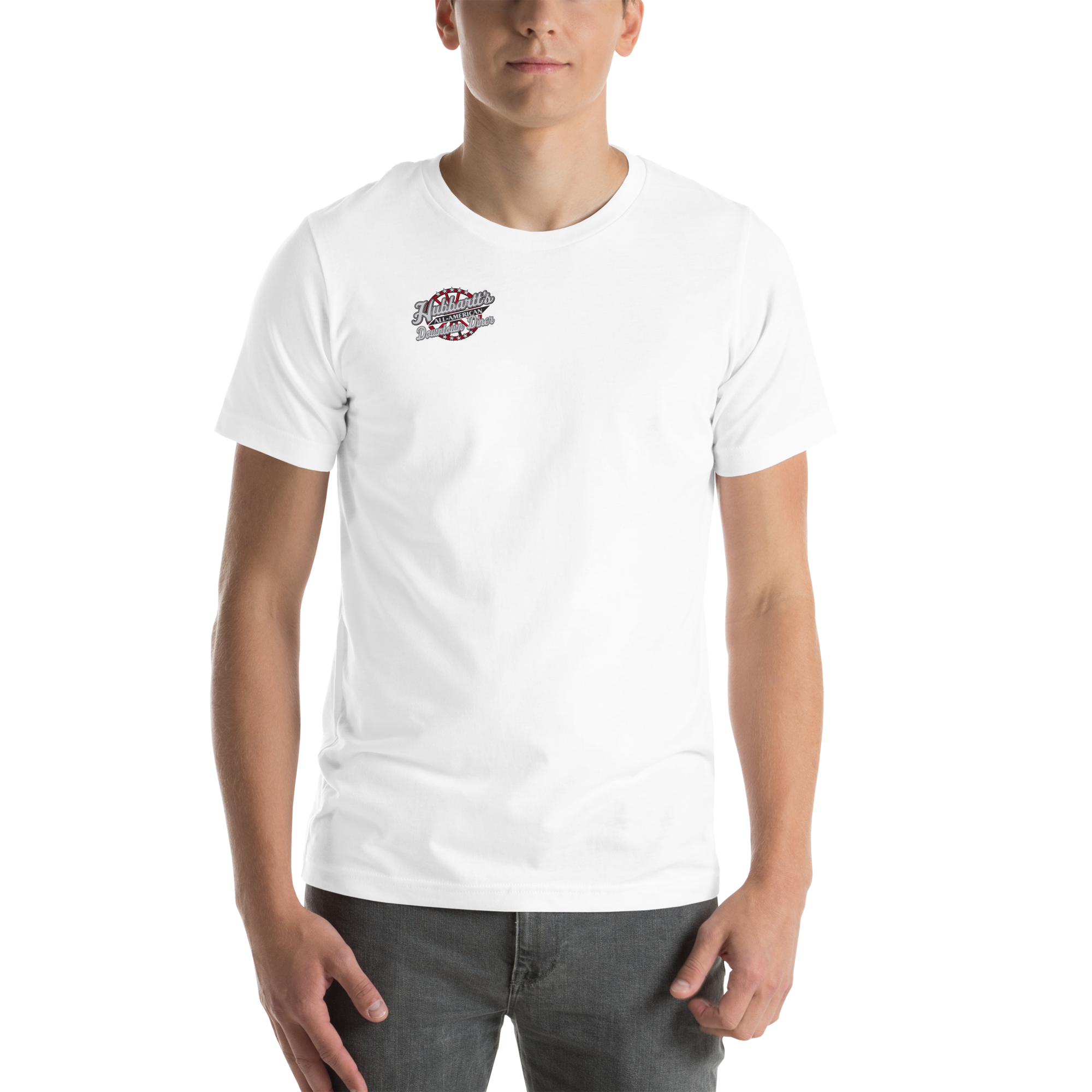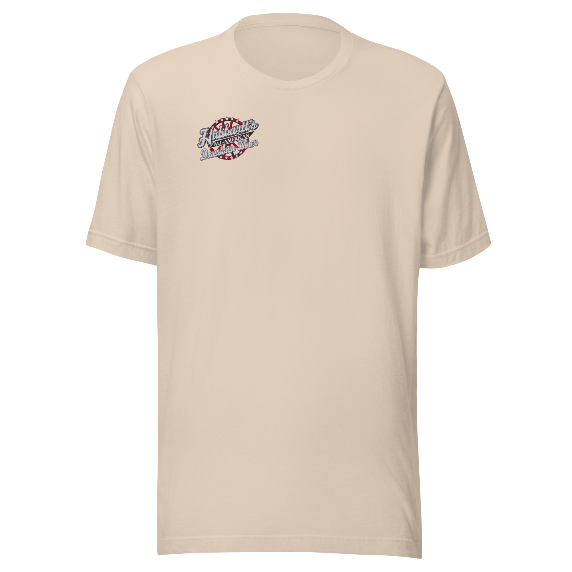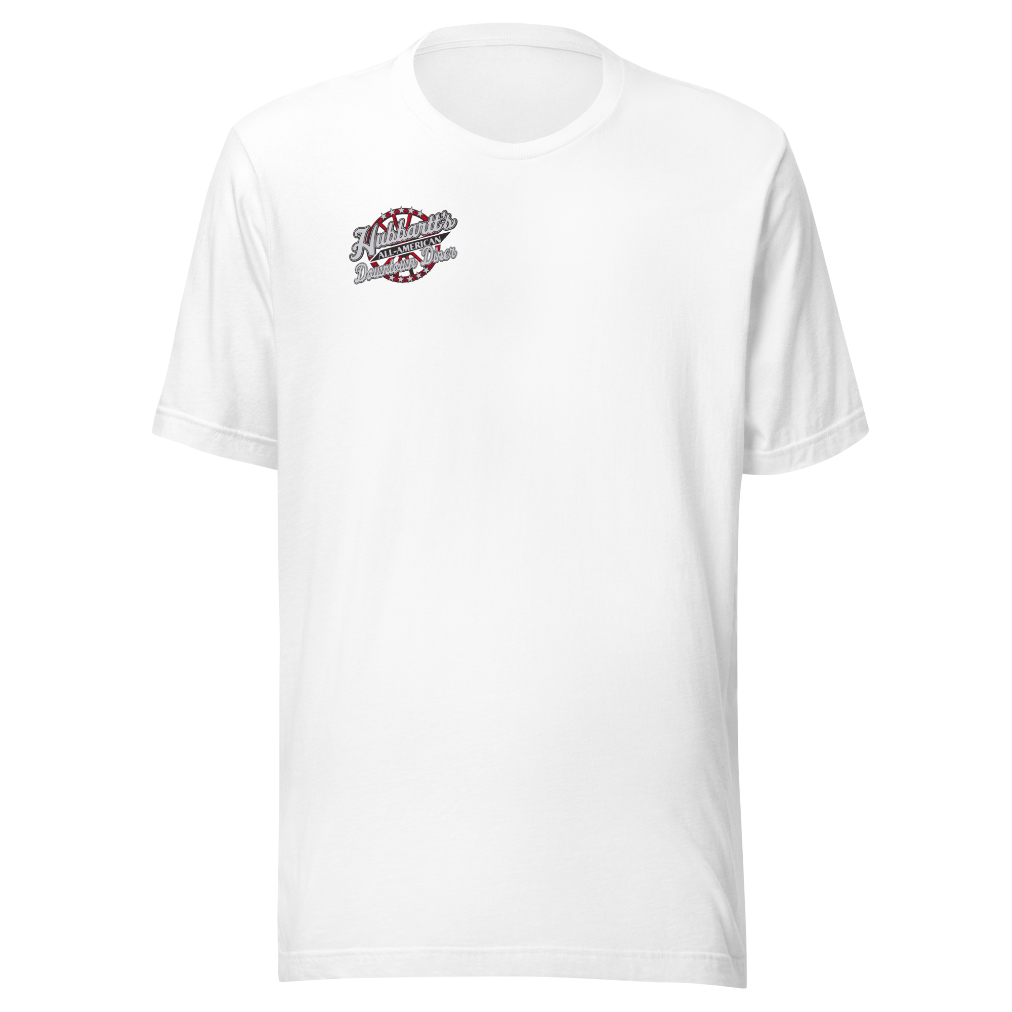 Unisex Staple T-Shirt - 10 Colors, 9 Sizes, Front Logo - From Hubbartt's Downtown Diner at the Monarch Shoppe