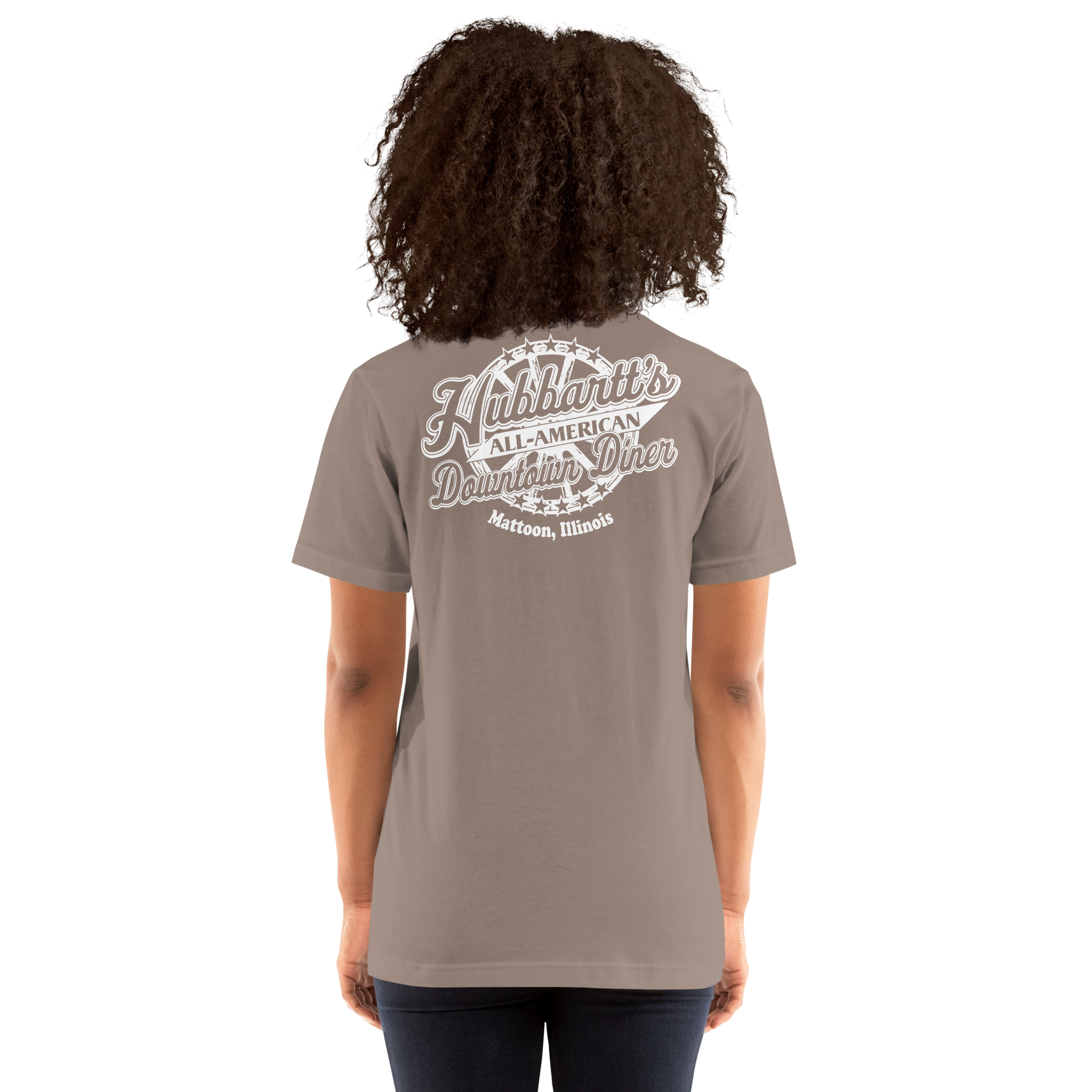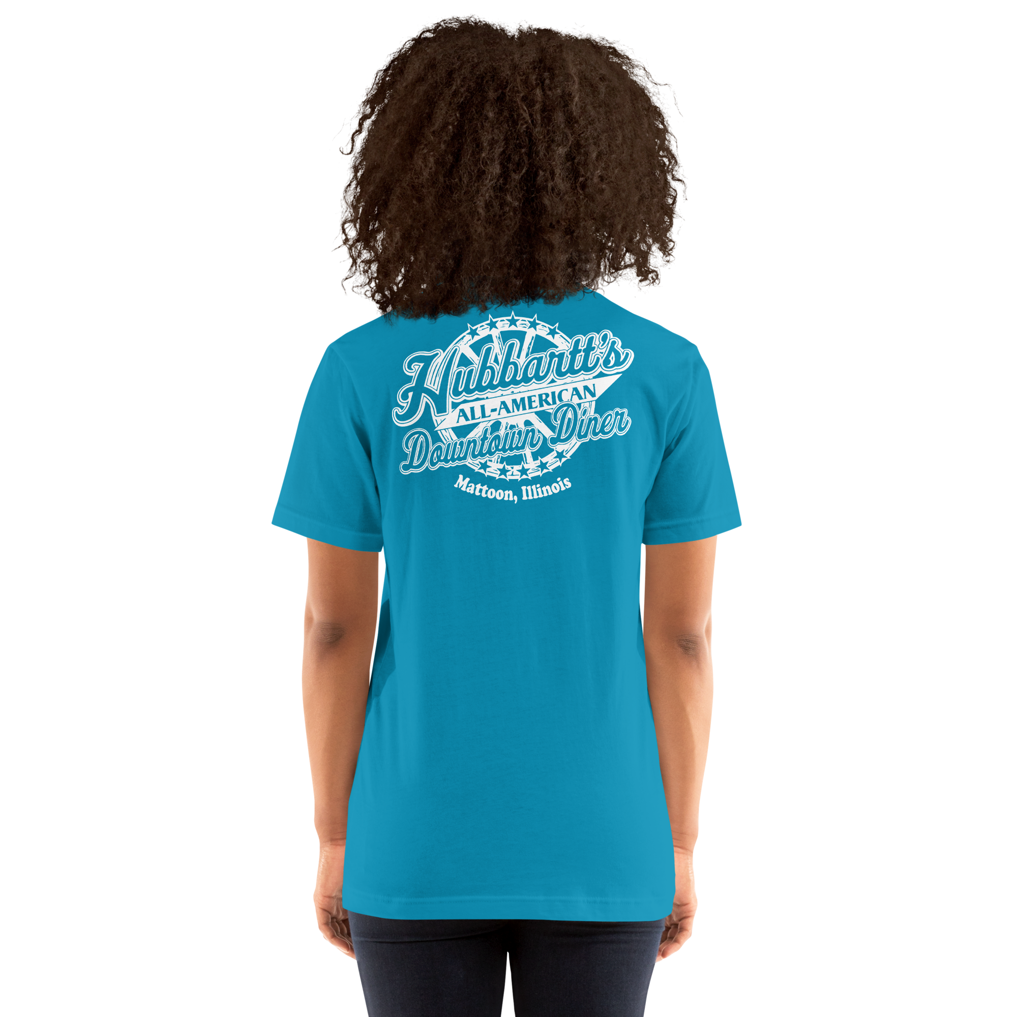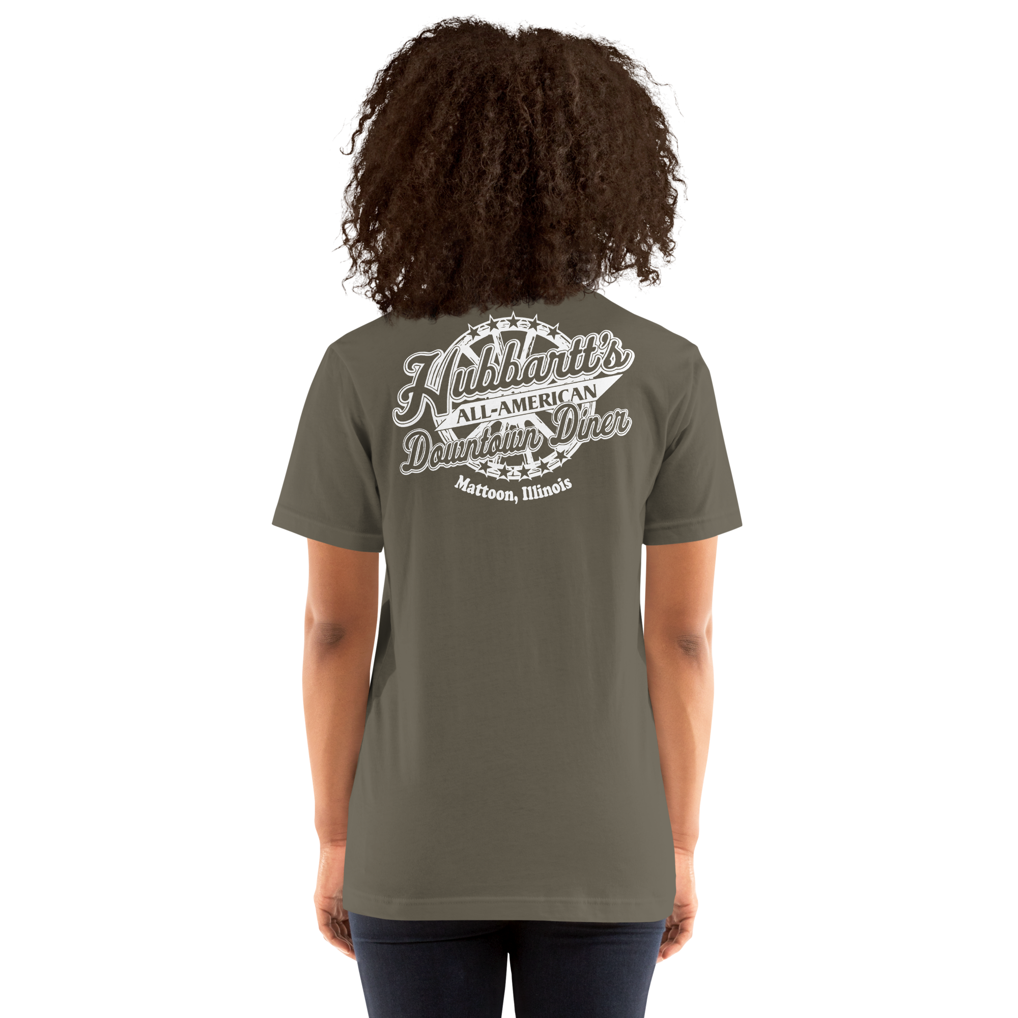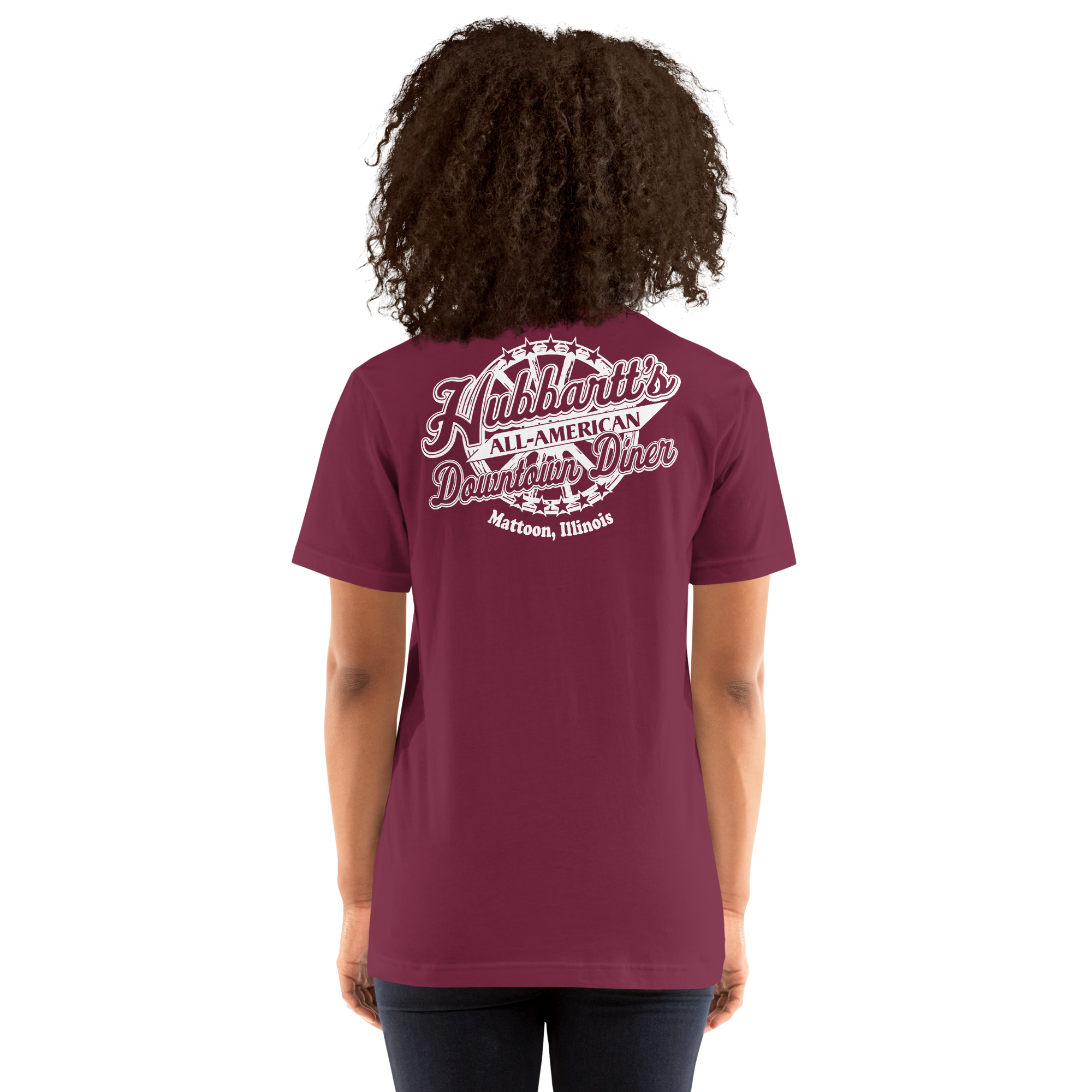 Unisex Staple T-Shirt - 12 Colors, 8 Sizes, White Front & Back Logo - From Hubbartt's Downtown Diner at the Monarch Shoppe