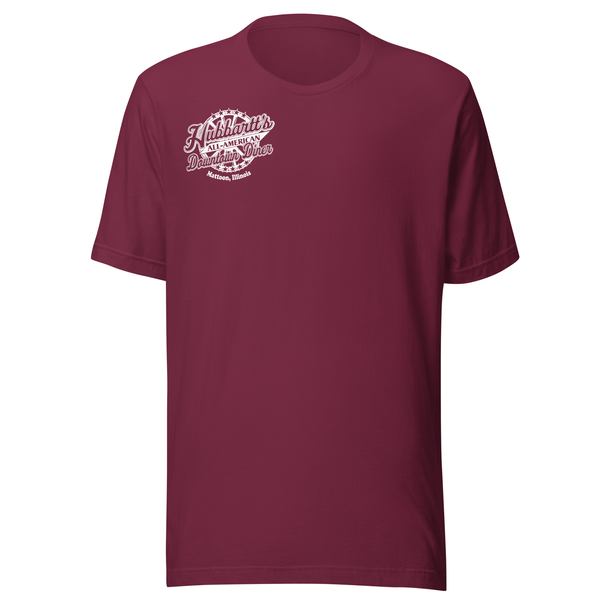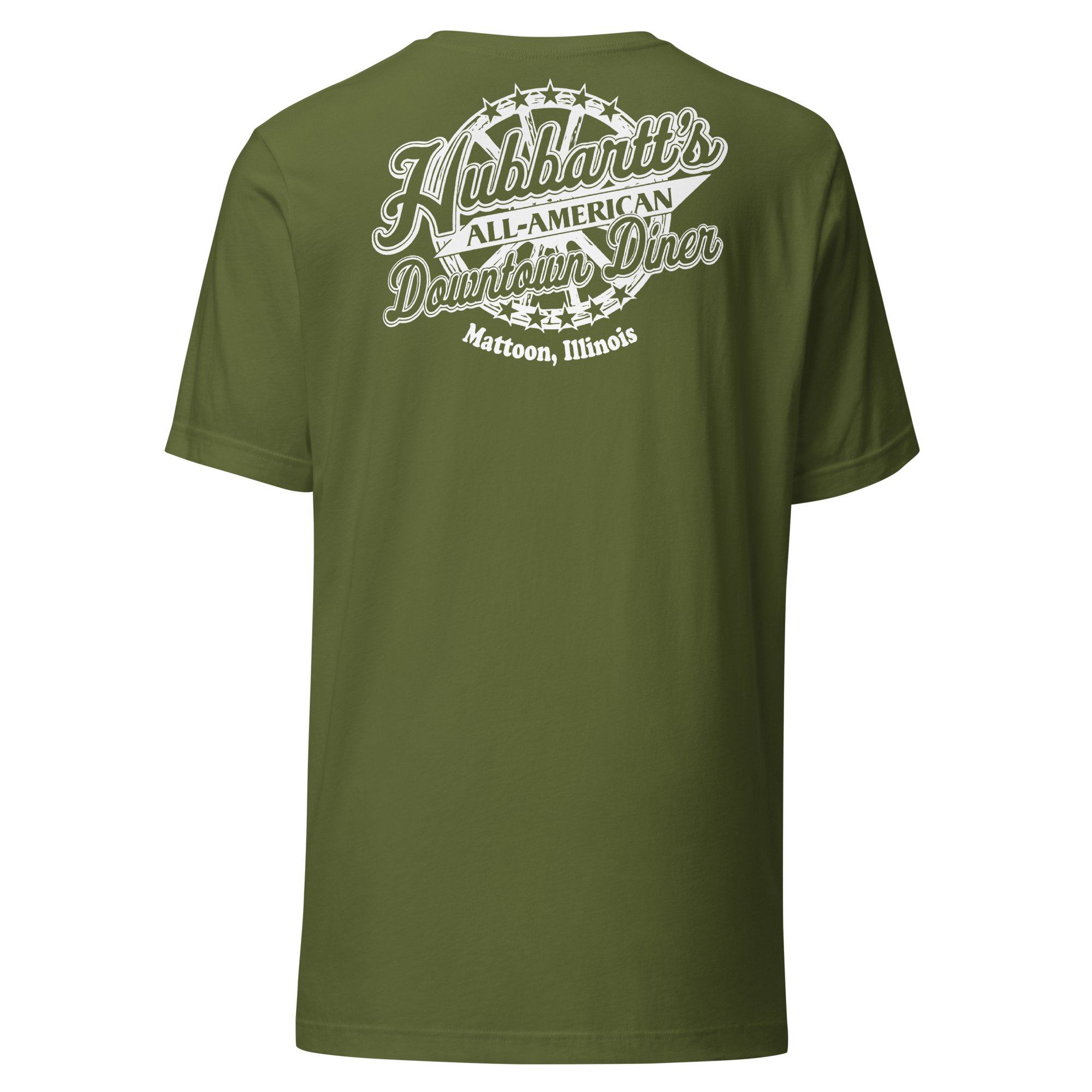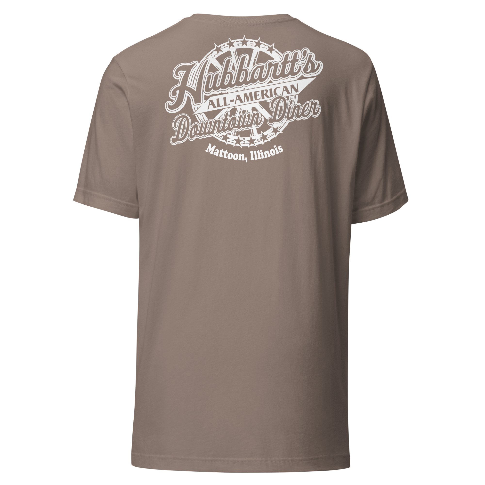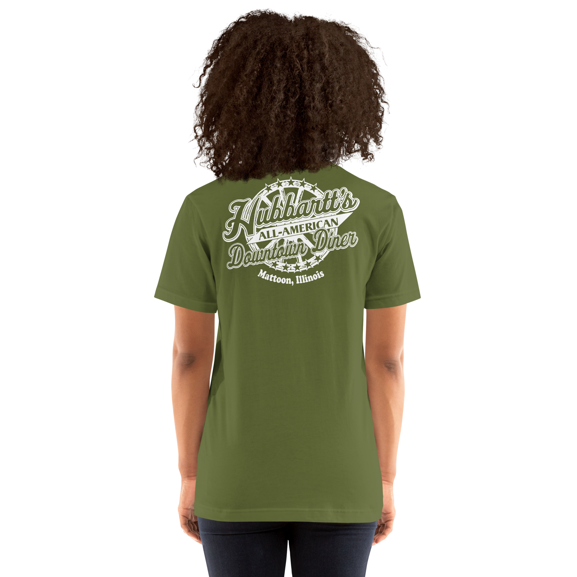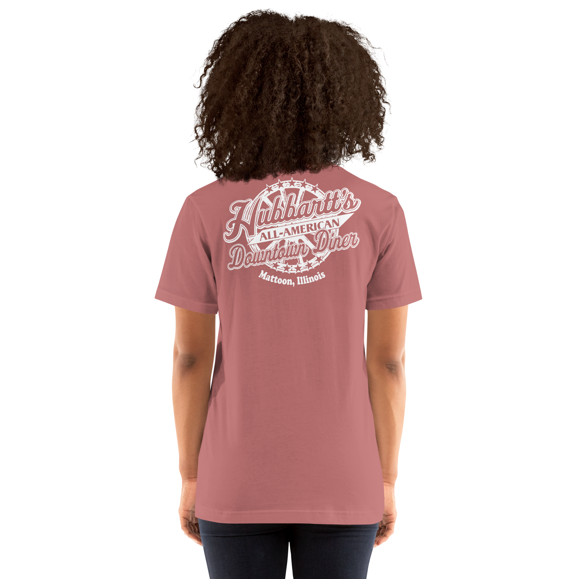 Unisex Staple T-Shirt - 12 Colors, 8 Sizes, White Front & Back Logo - From Hubbartt's Downtown Diner at the Monarch Shoppe