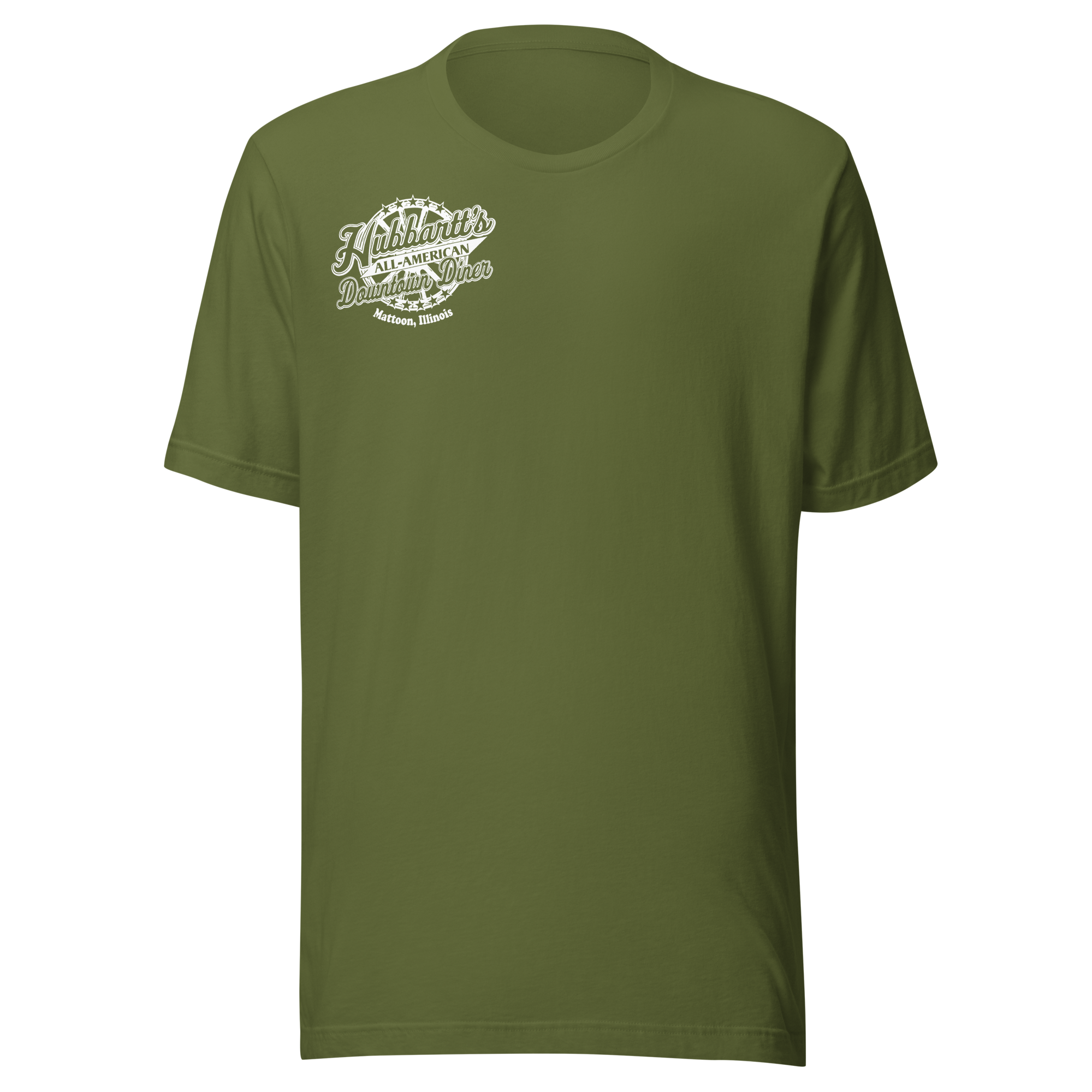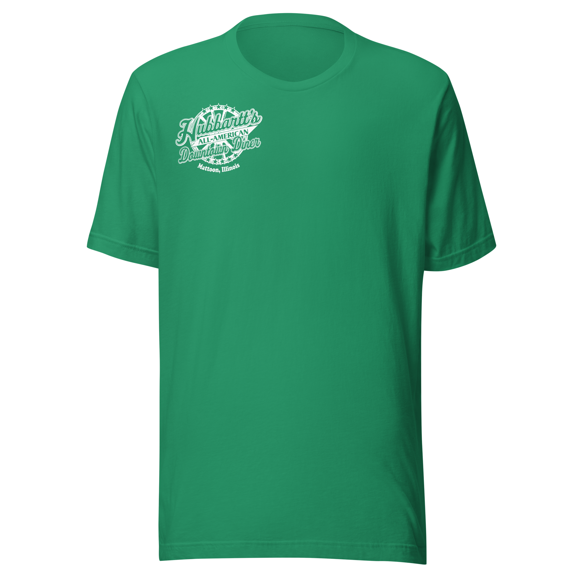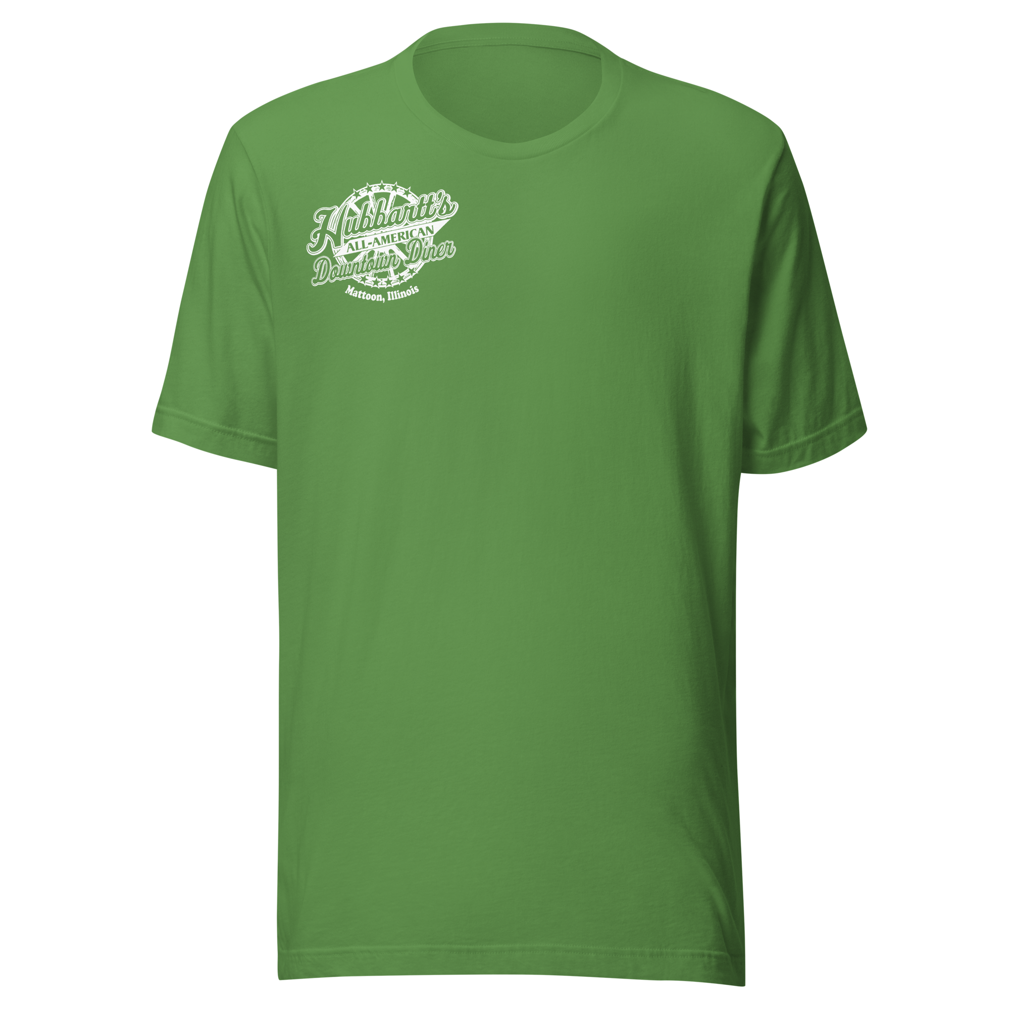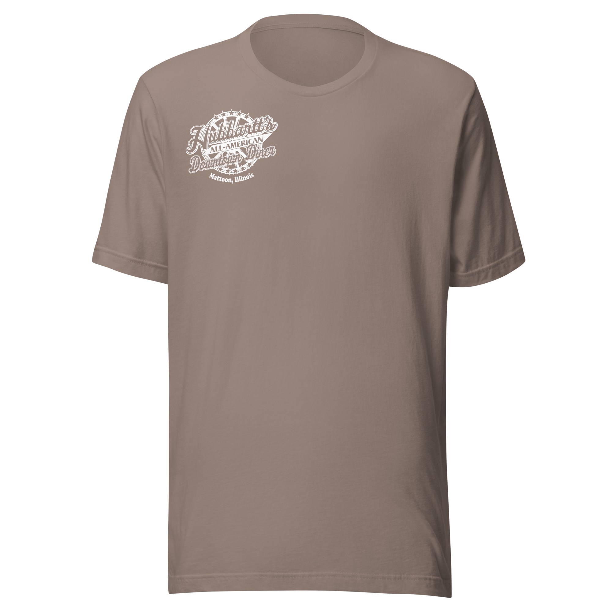 Unisex Staple T-Shirt - 12 Colors, 8 Sizes, White Front & Back Logo - From Hubbartt's Downtown Diner at the Monarch Shoppe
