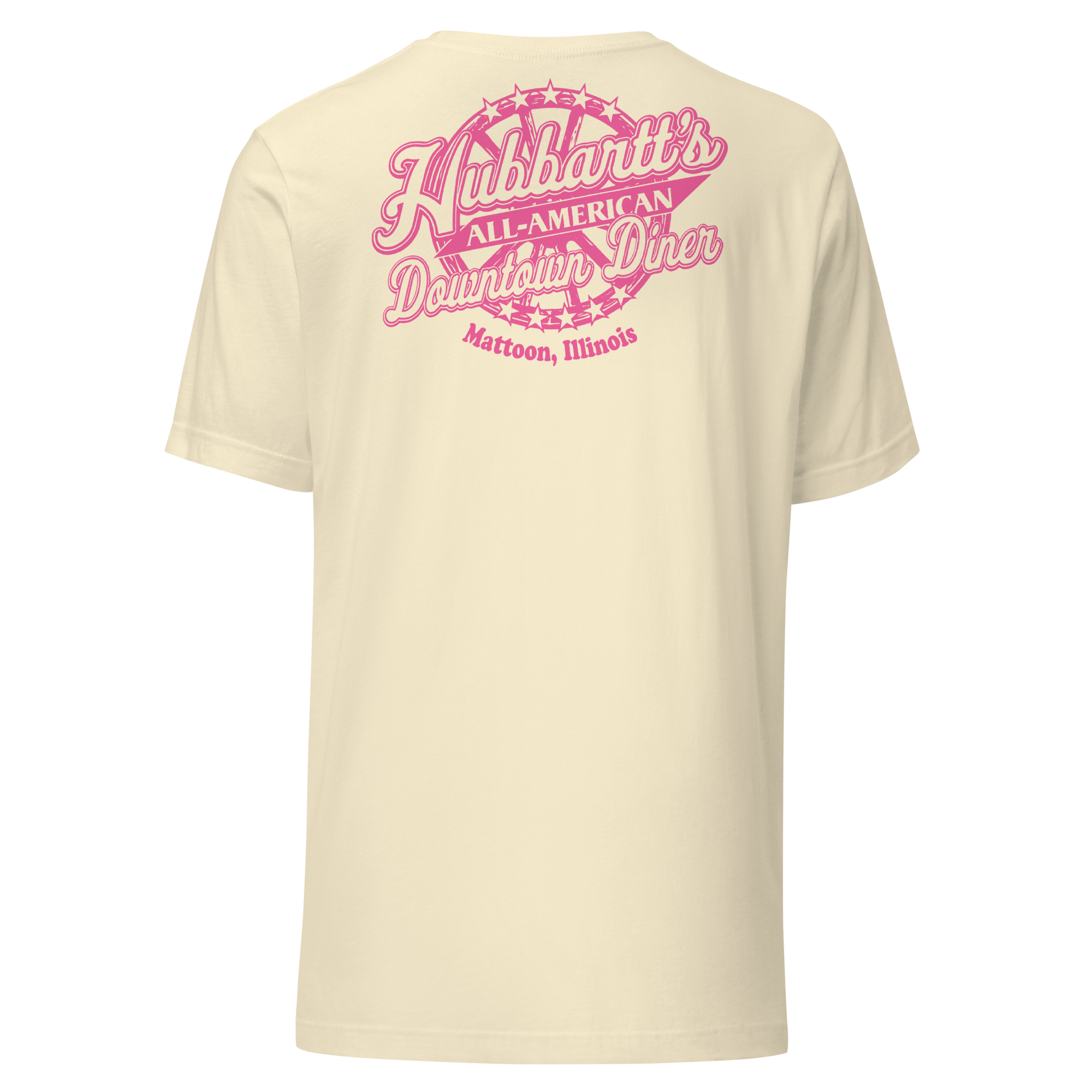 Unisex Staple T-Shirt - 12 Colors, 9 Sizes, Pink Front & Back Logo - From Hubbartt's Downtown Diner at the Monarch Shoppe