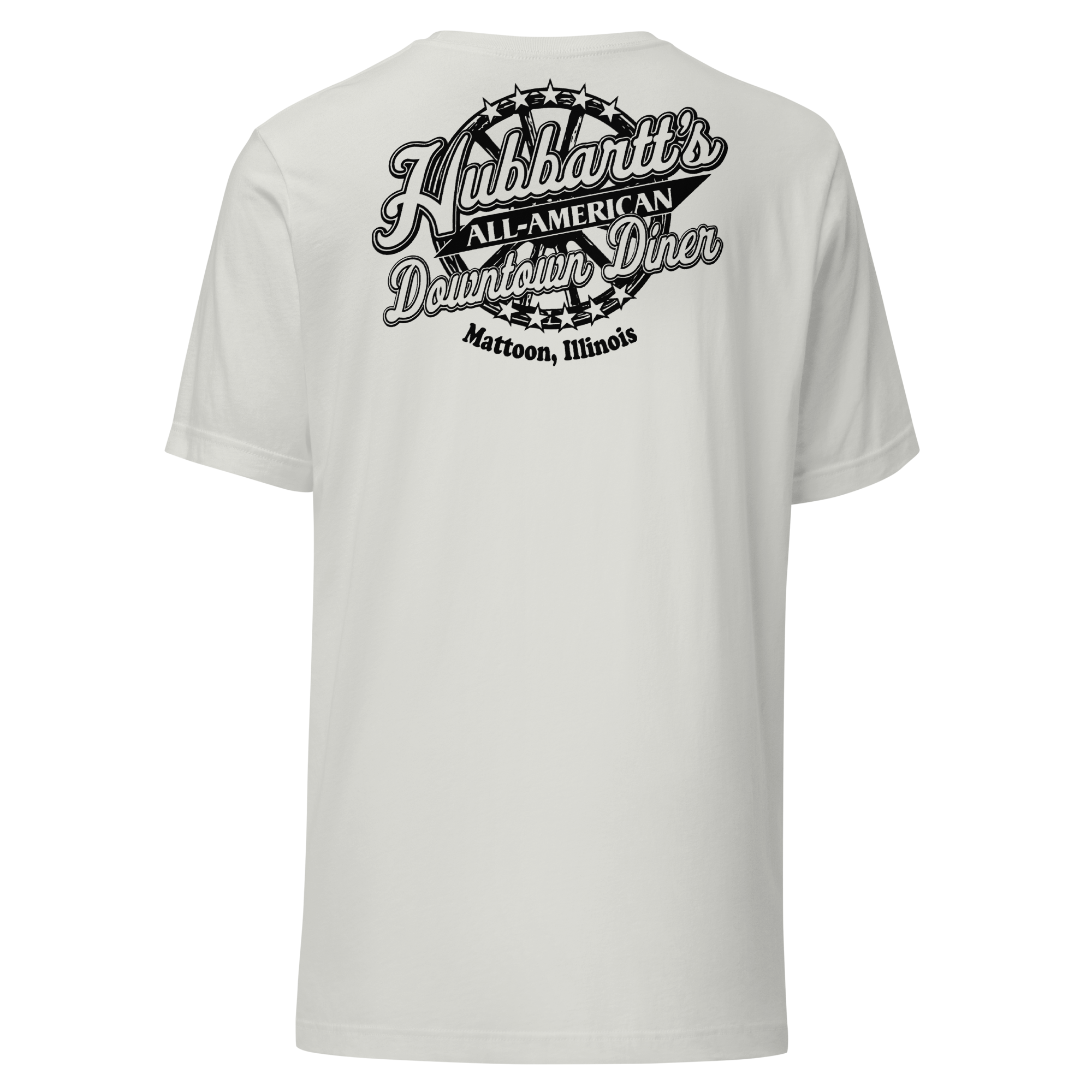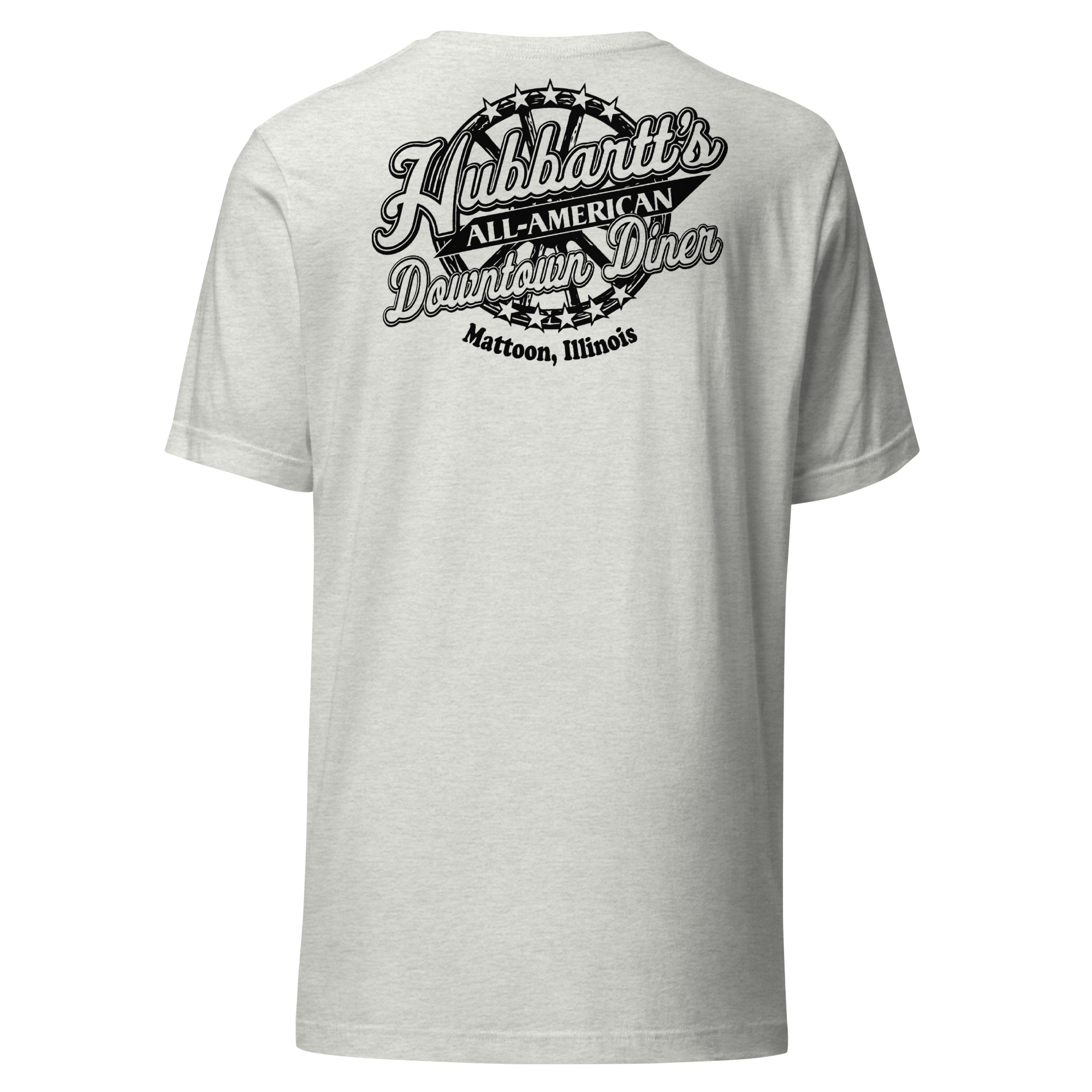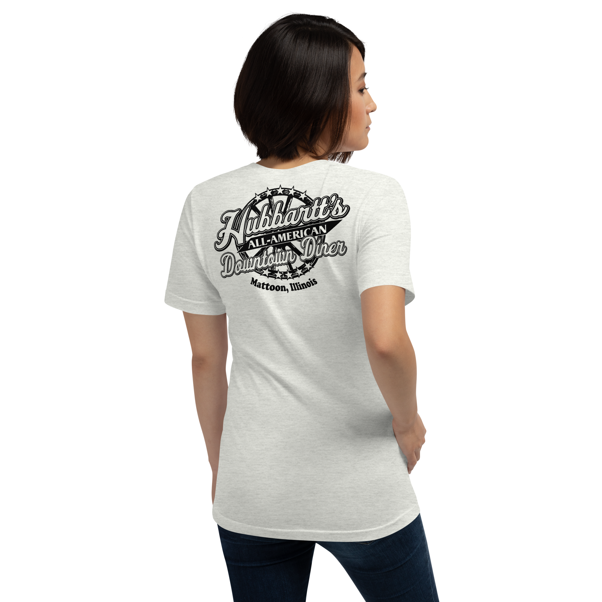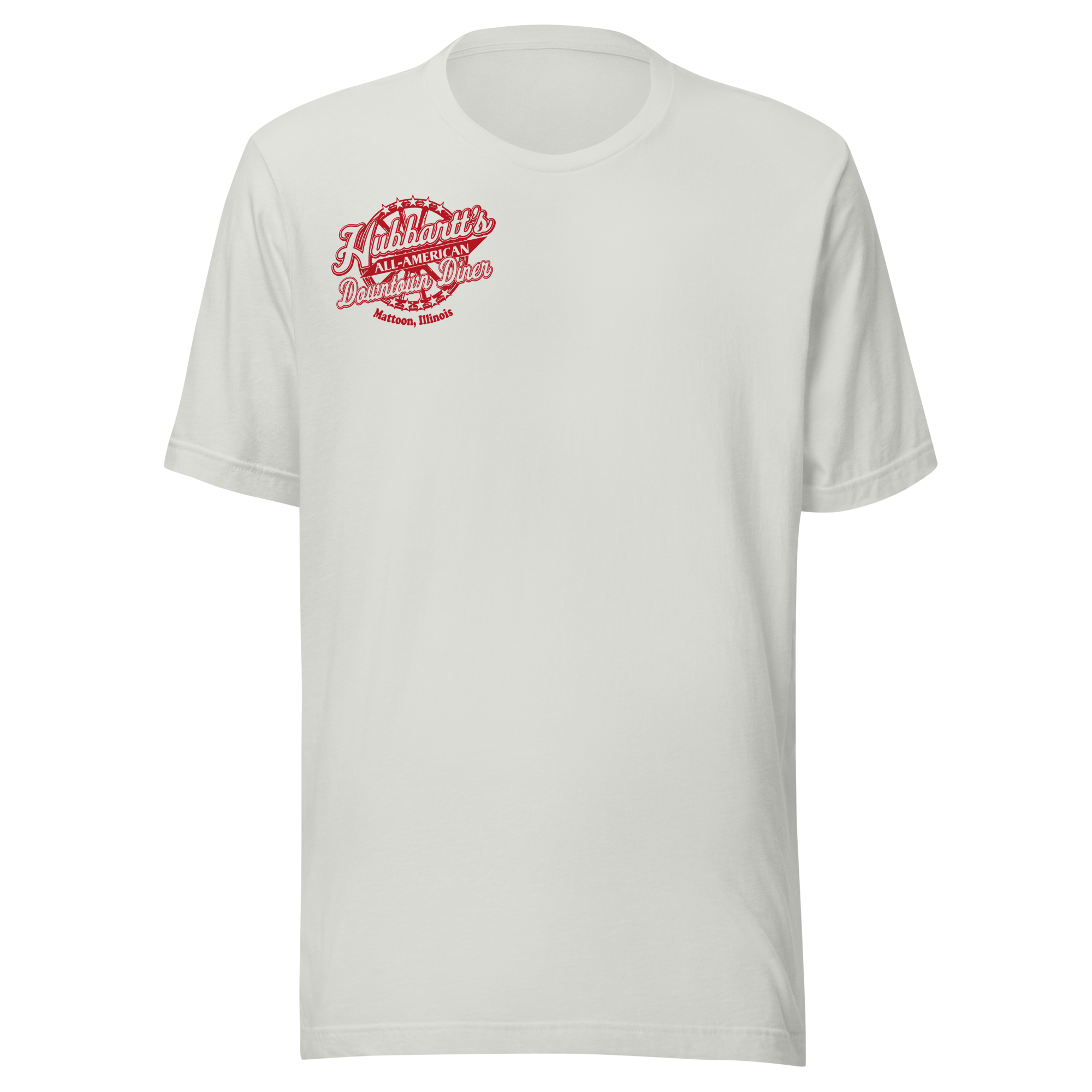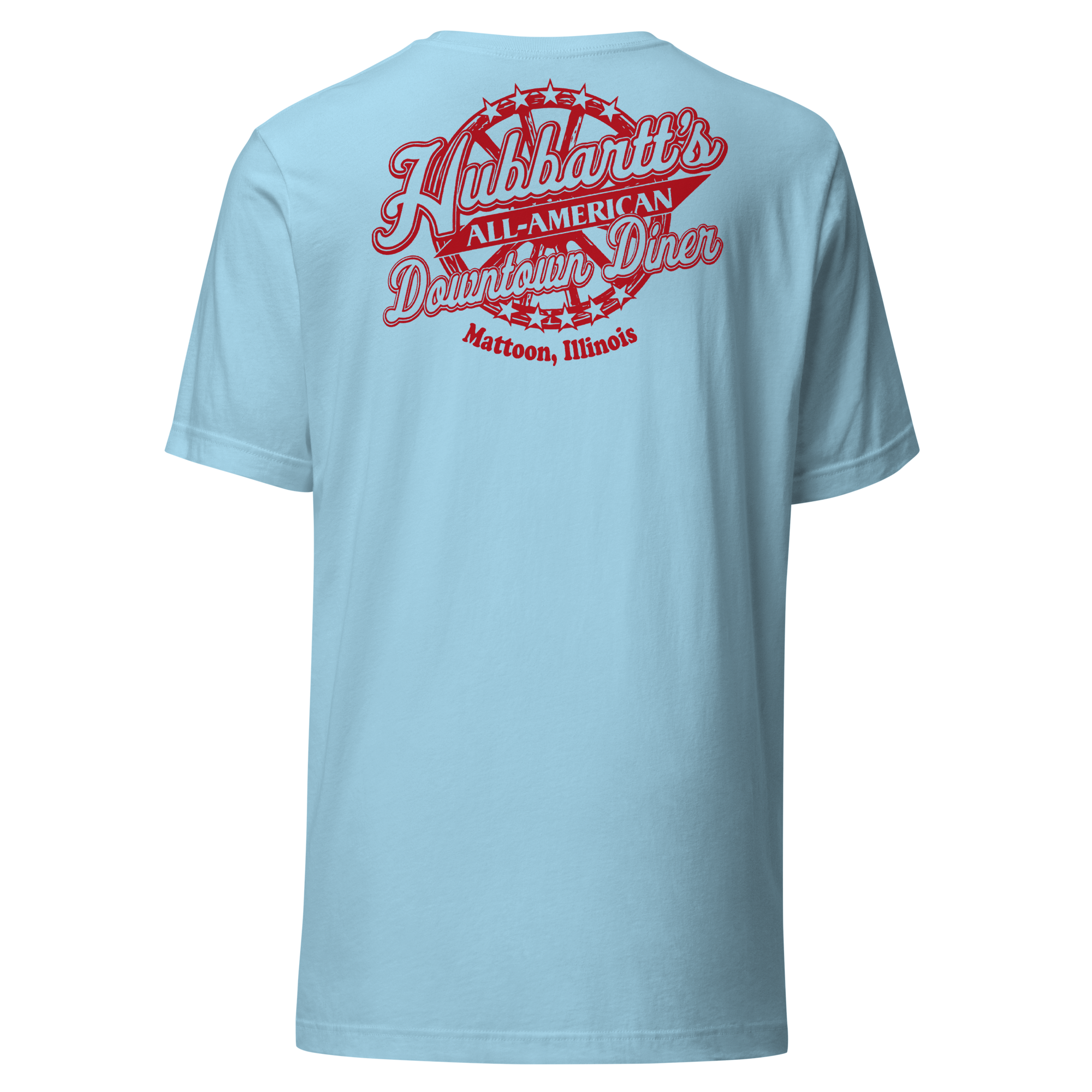 Unisex Staple T-Shirt - 12 Colors, 9 Sizes, Red Front & Back Logo - From Hubbartt's Downtown Diner at the Monarch Shoppe