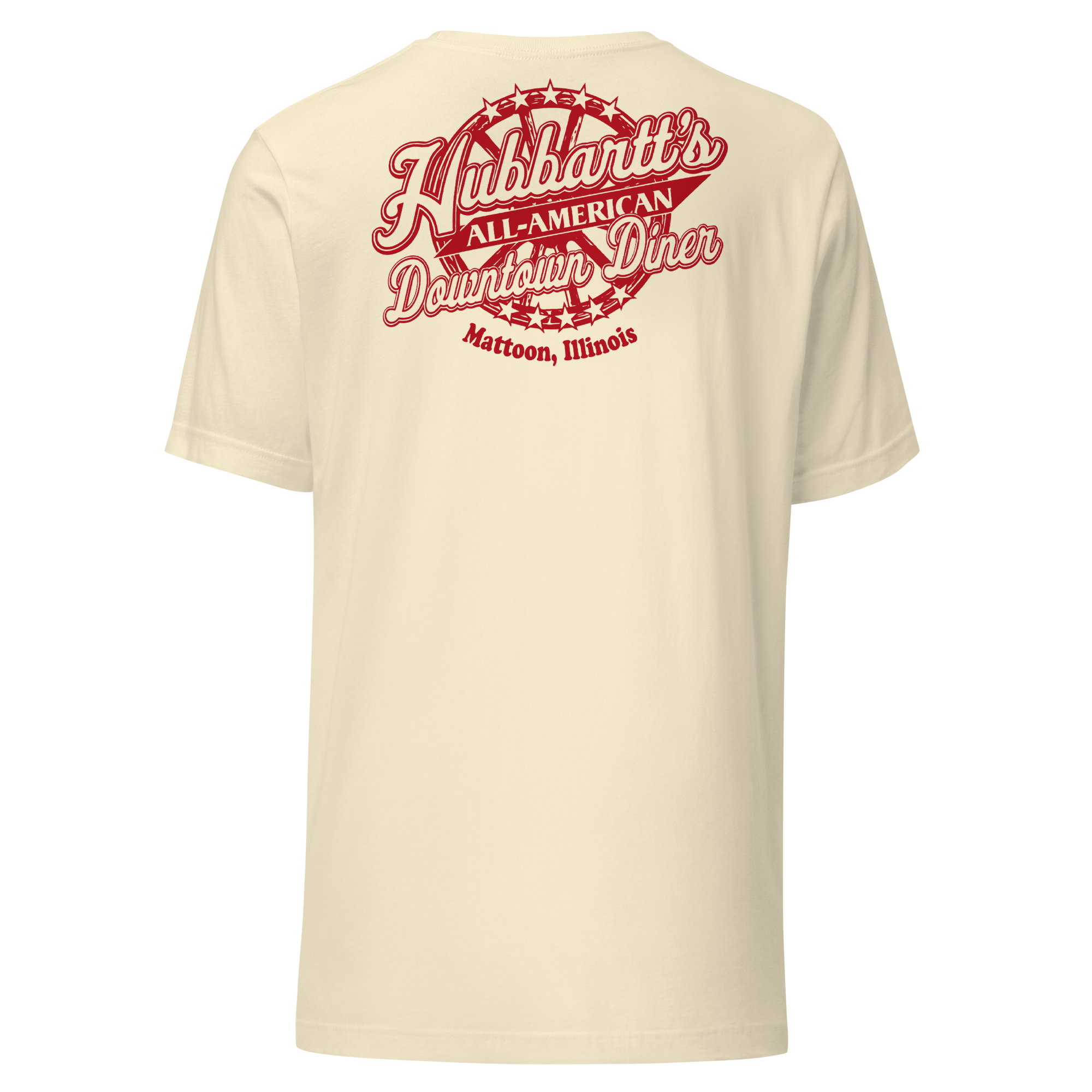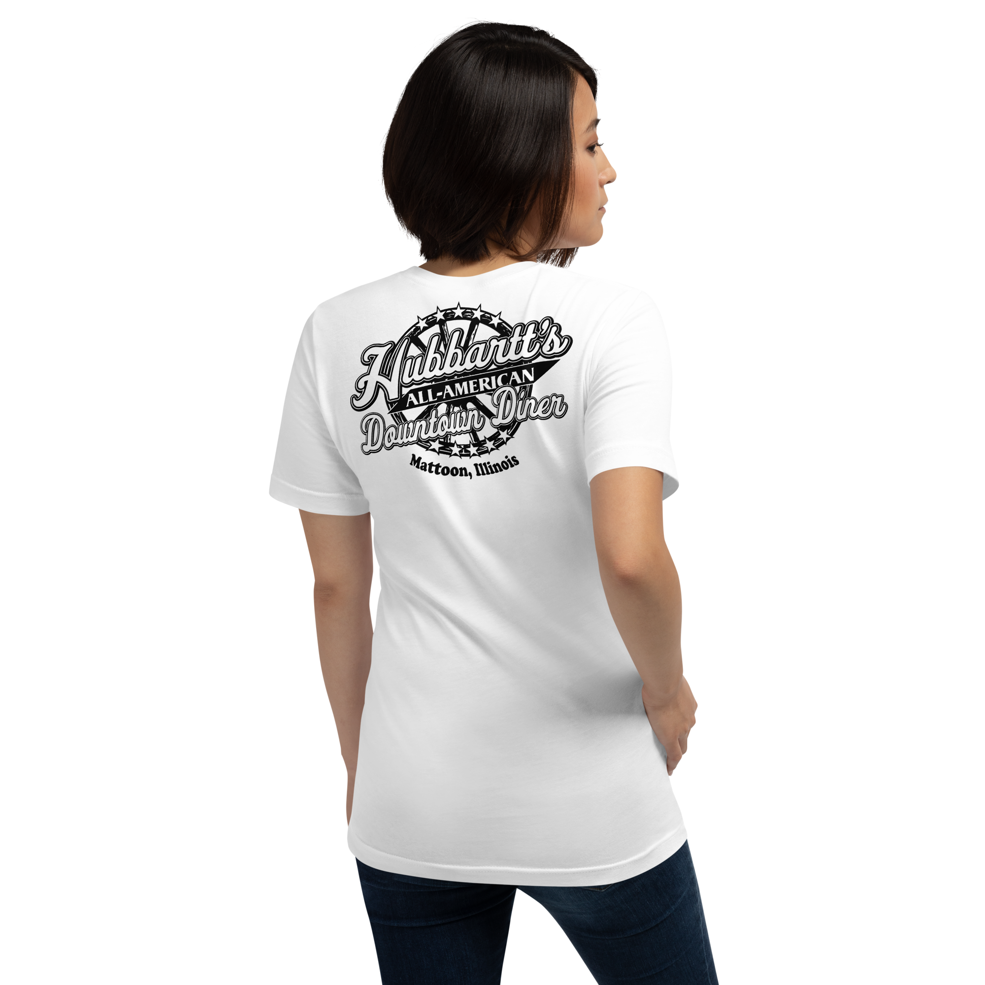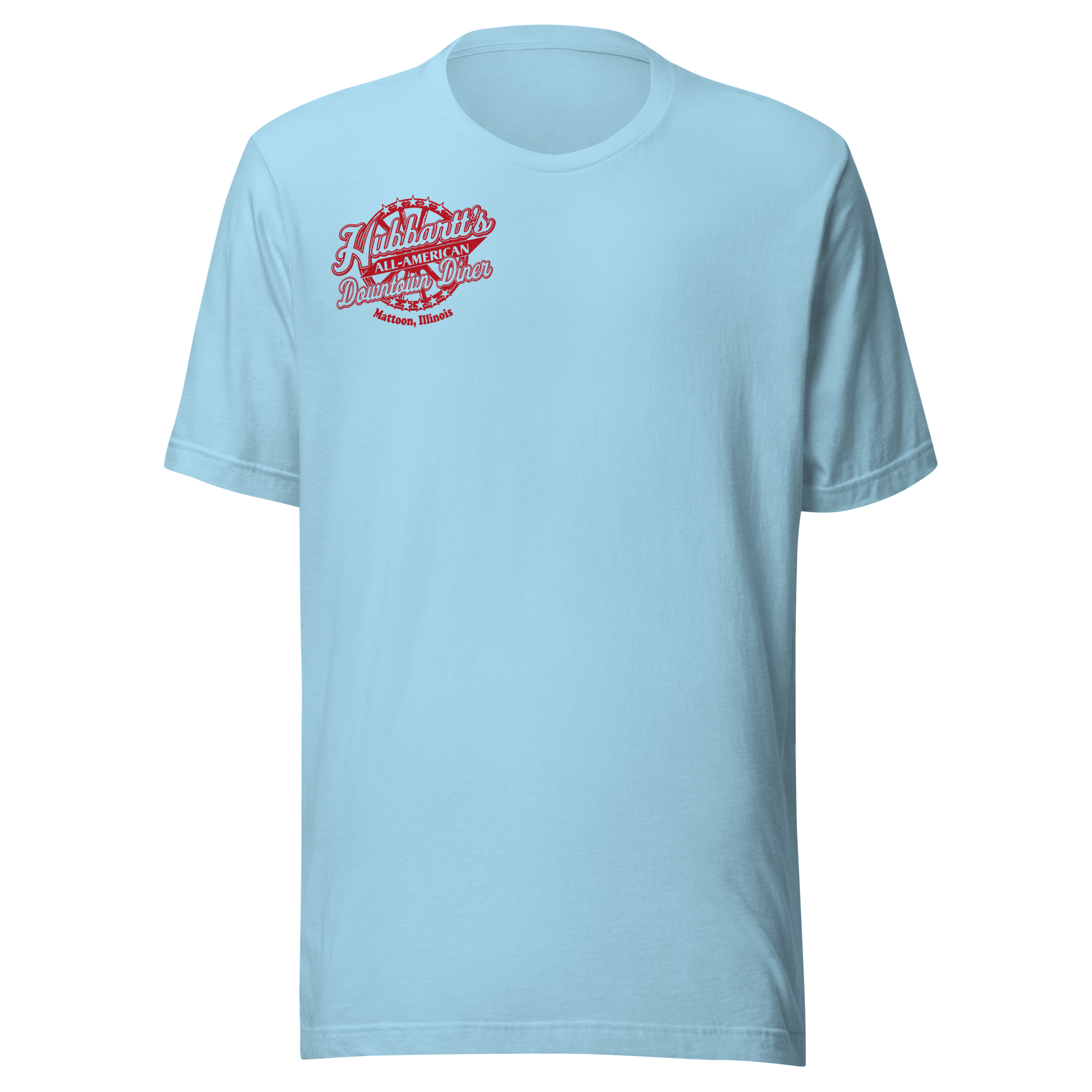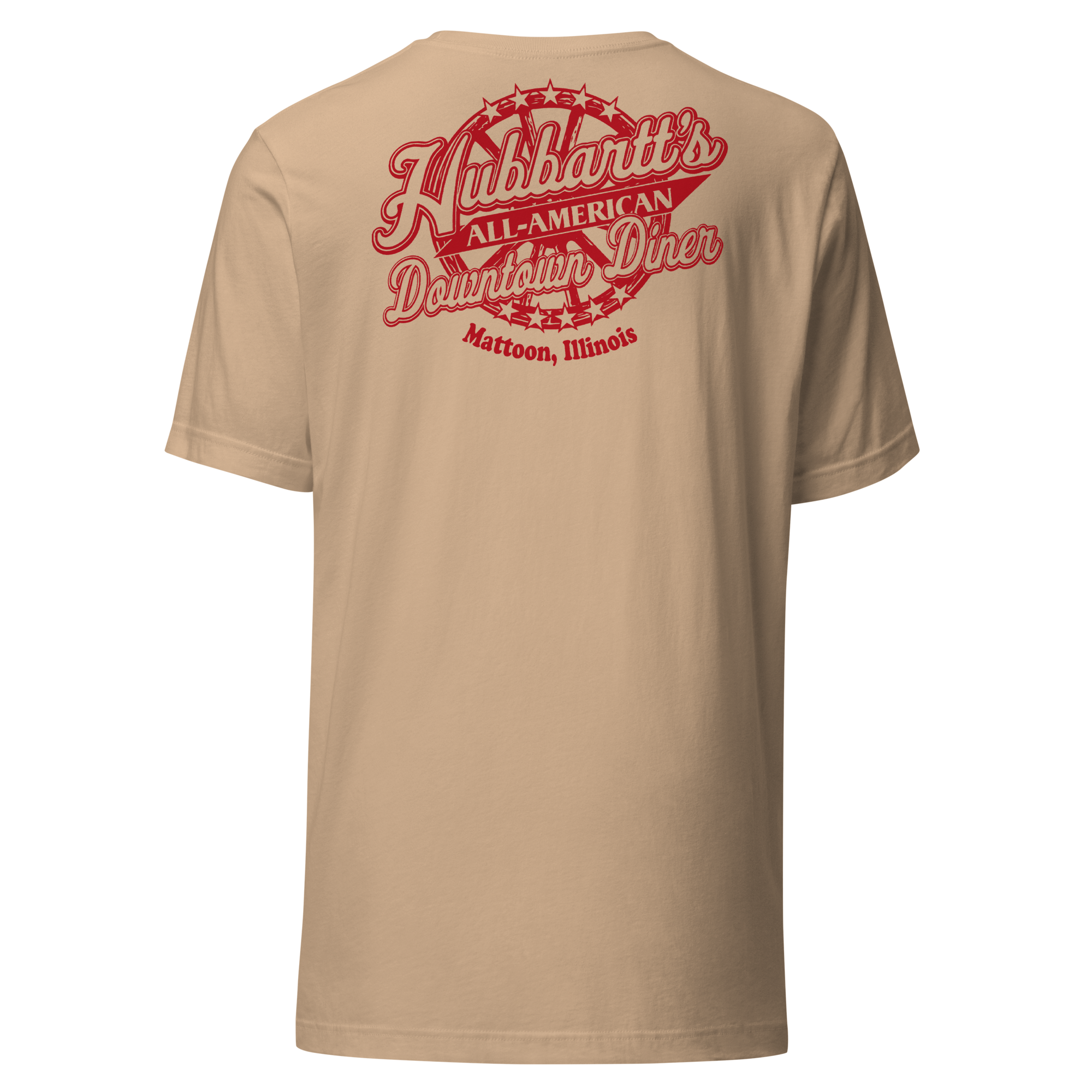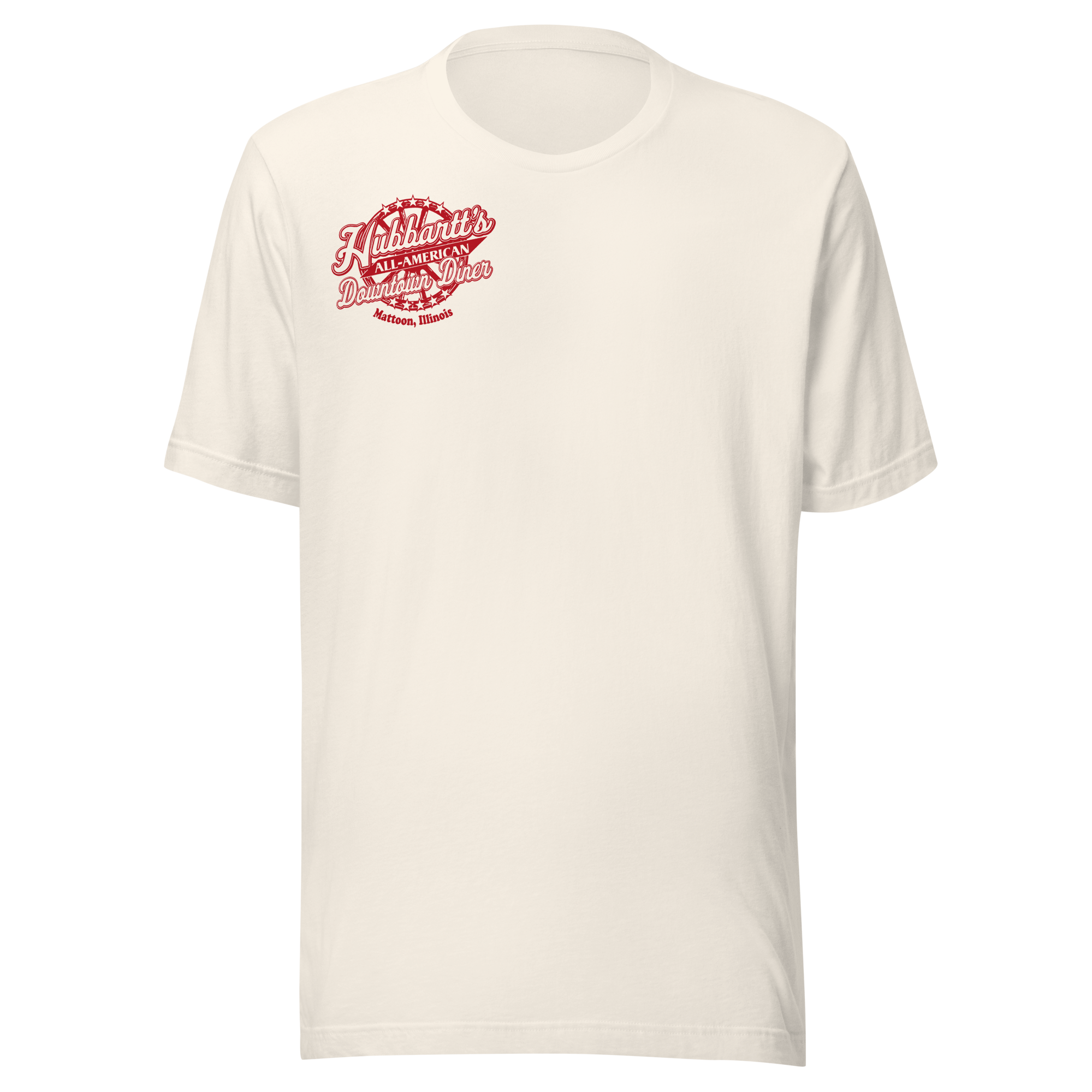 Unisex Staple T-Shirt - 12 Colors, 9 Sizes, Red Front & Back Logo - From Hubbartt's Downtown Diner at the Monarch Shoppe