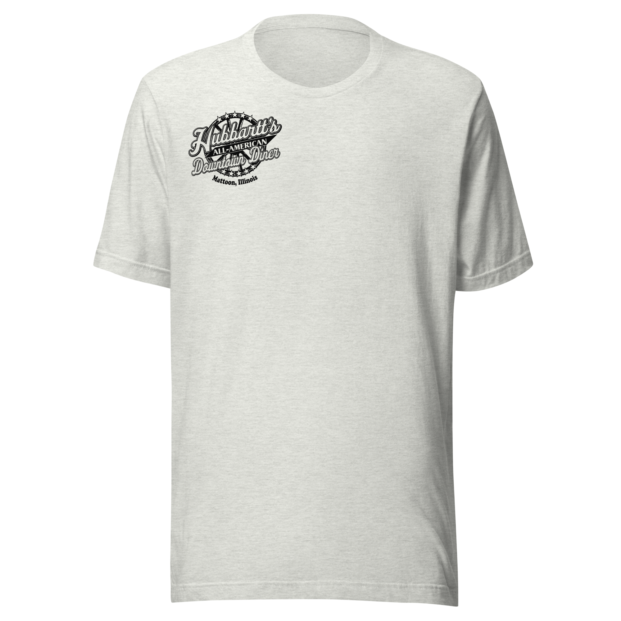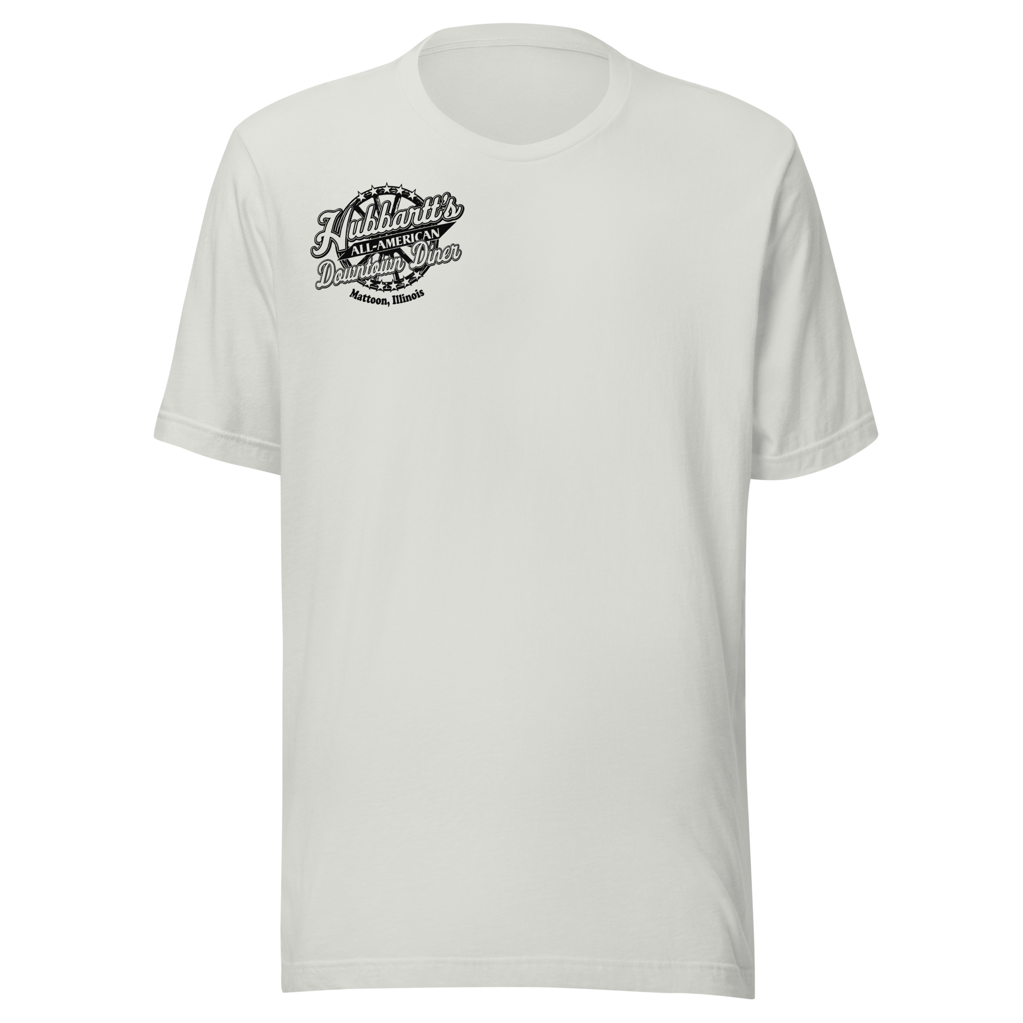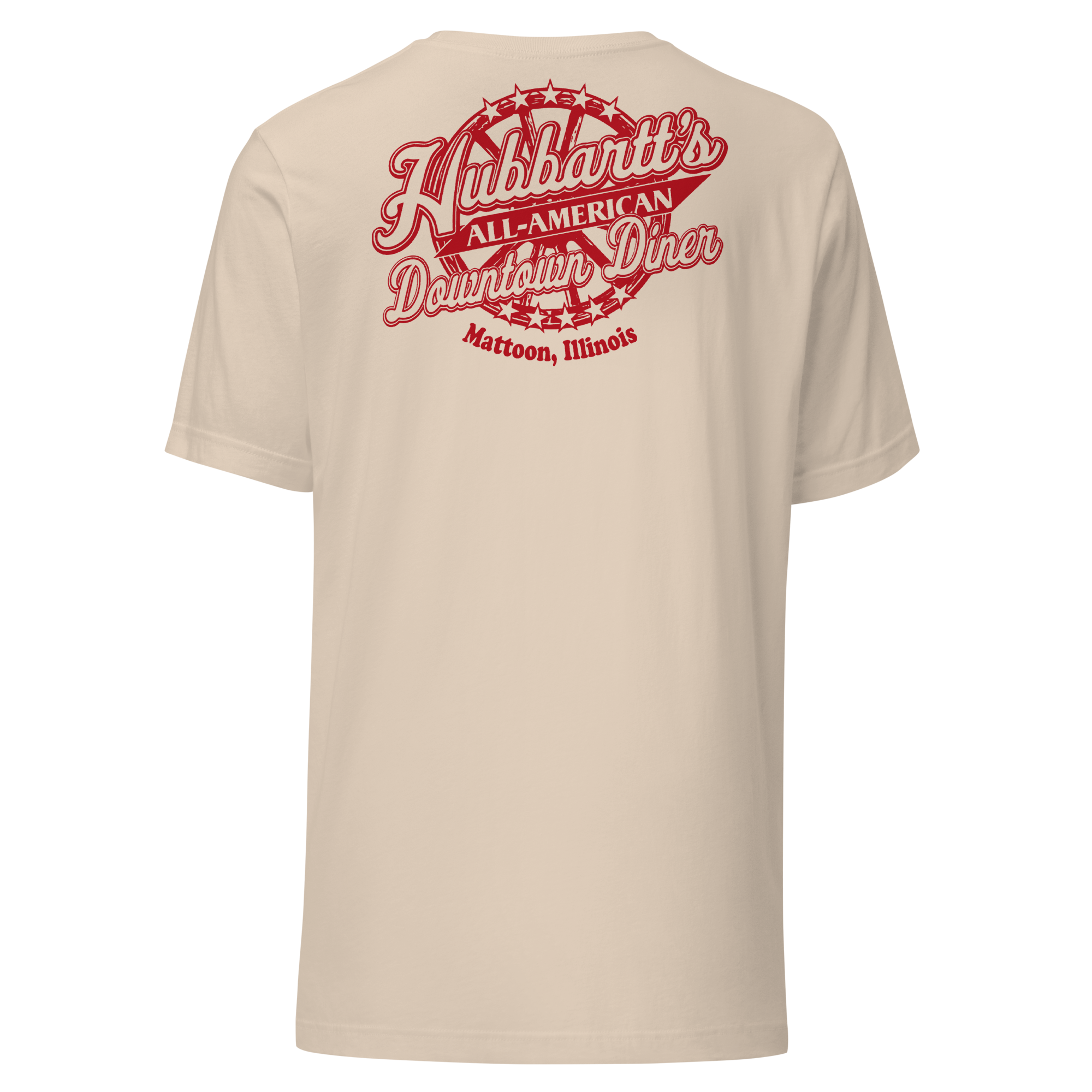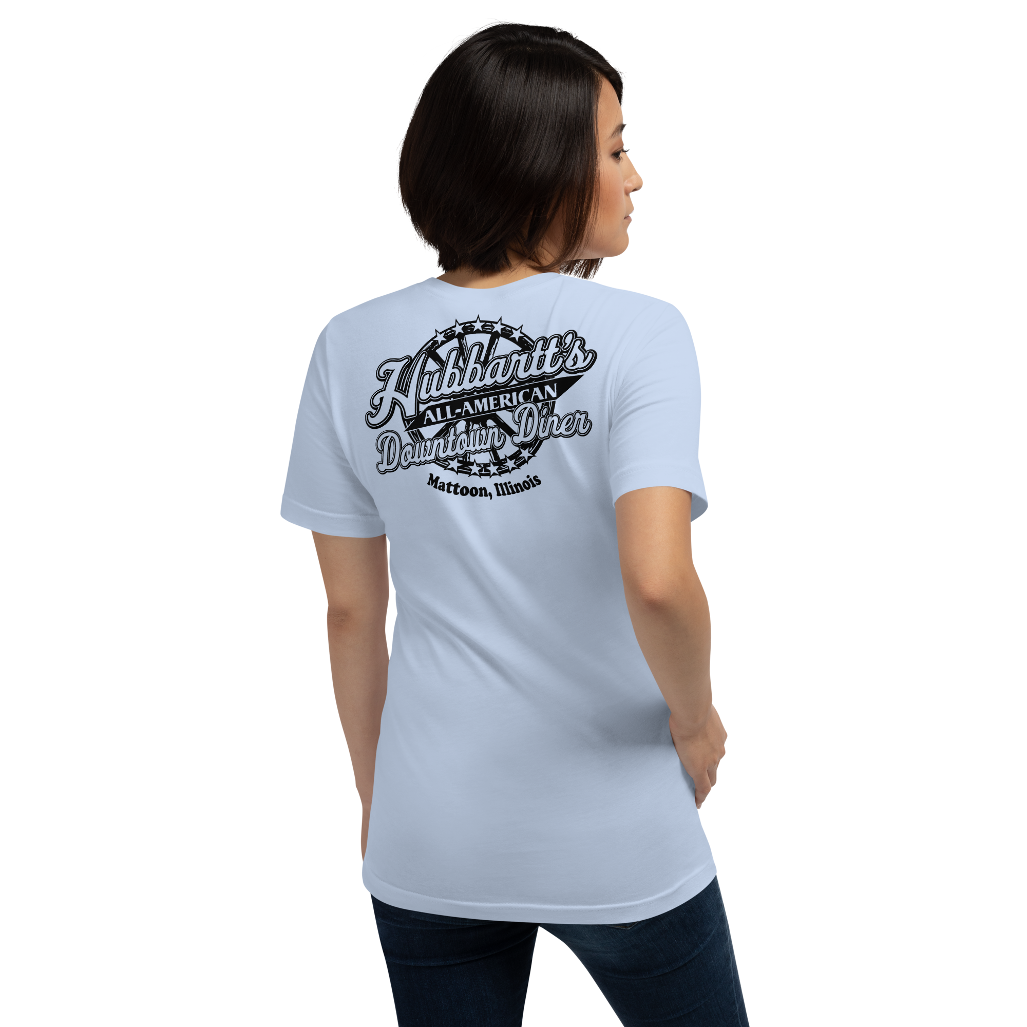 Unisex Staple T-Shirt - 12 Colors, 9 Sizes, Red Front & Back Logo - From Hubbartt's Downtown Diner at the Monarch Shoppe