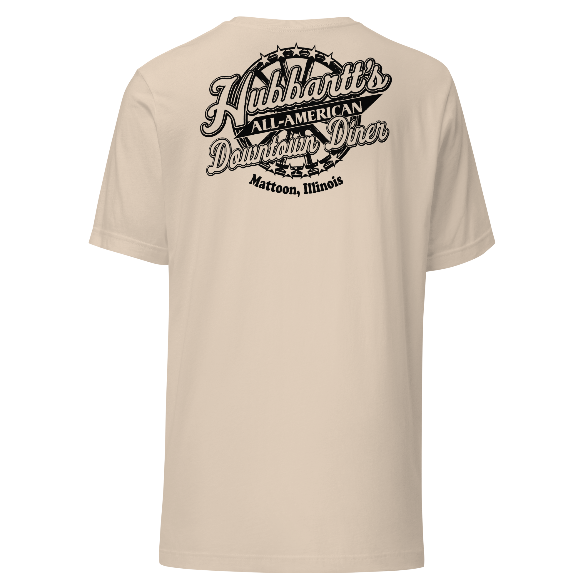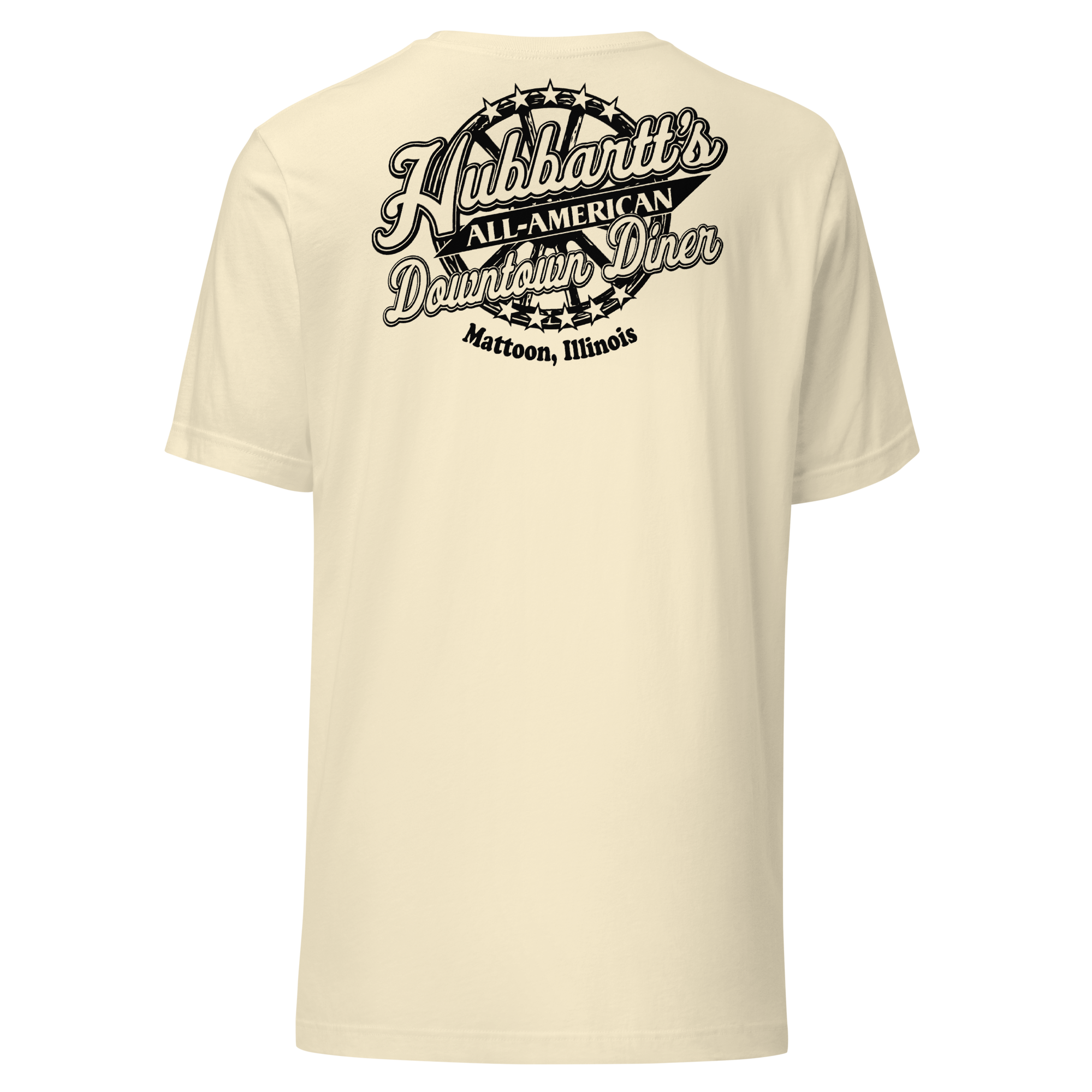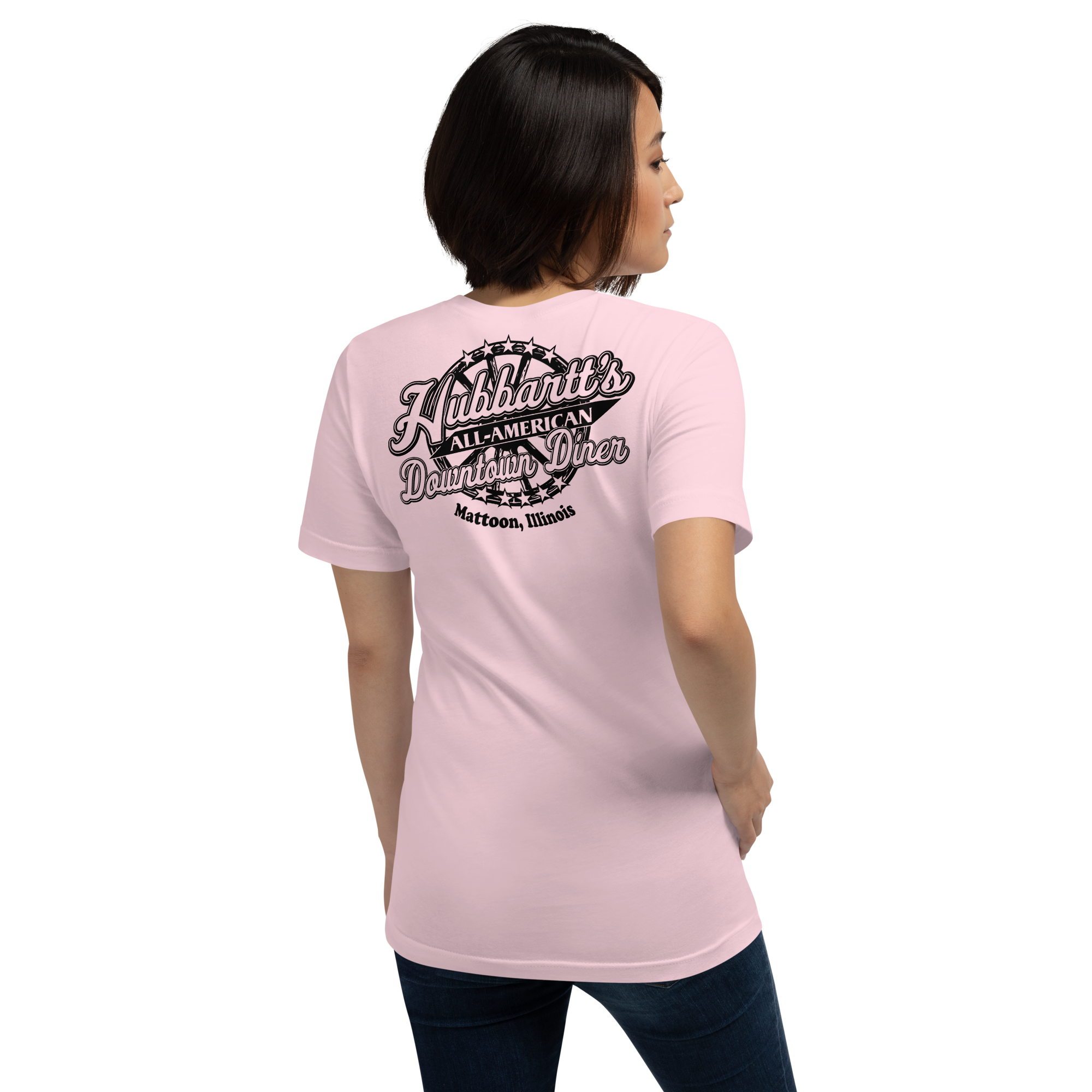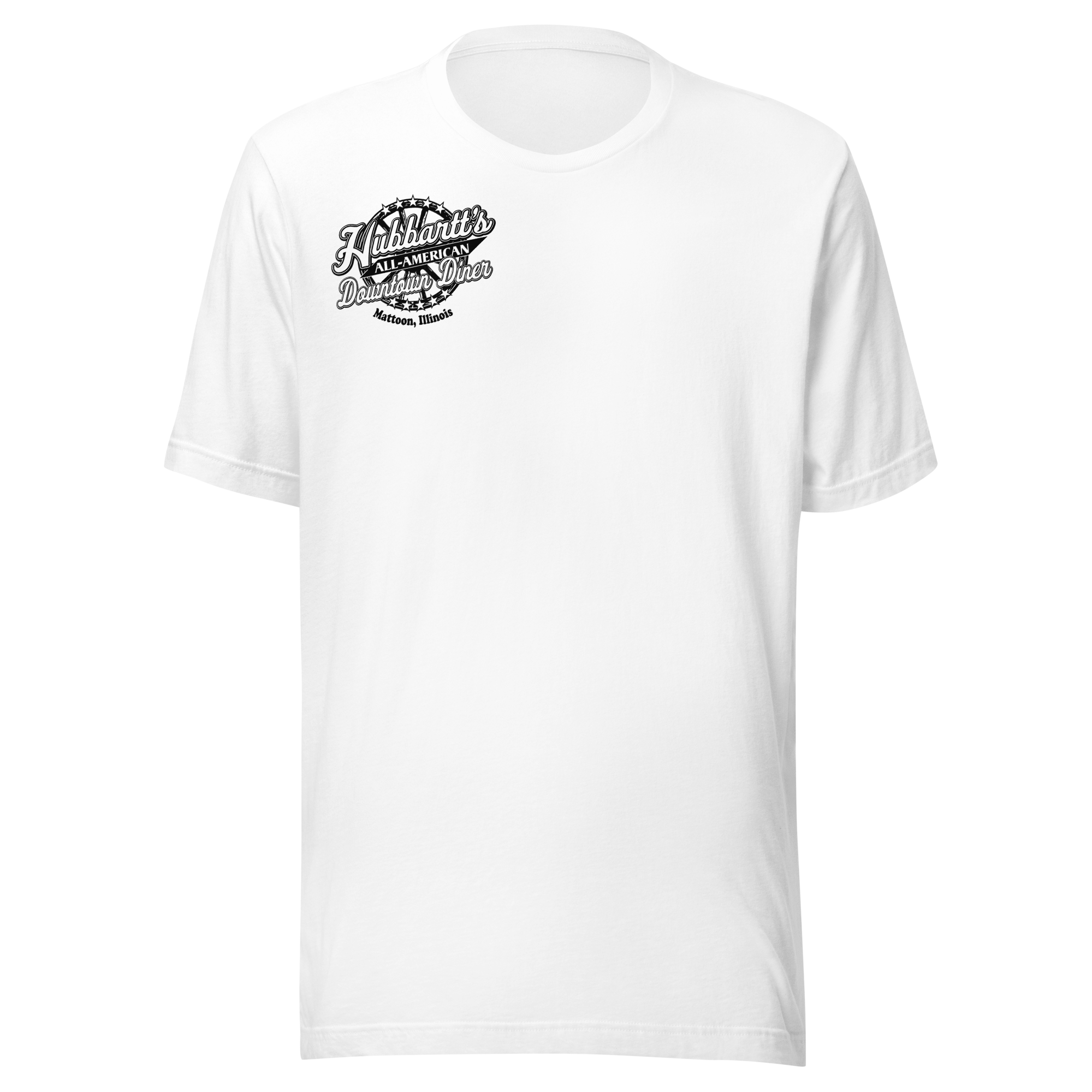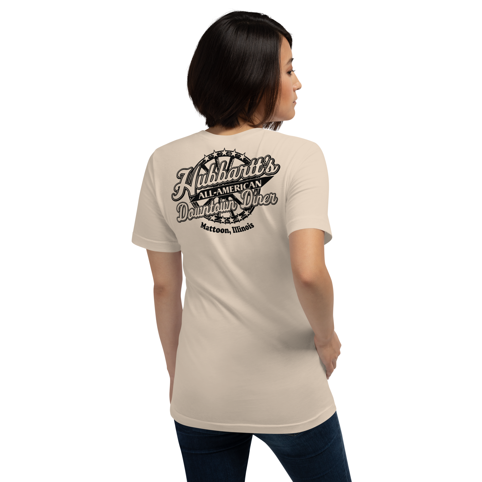 Unisex Staple T-Shirt - 12 Colors, 9 Sizes, Red Front & Back Logo - From Hubbartt's Downtown Diner at the Monarch Shoppe