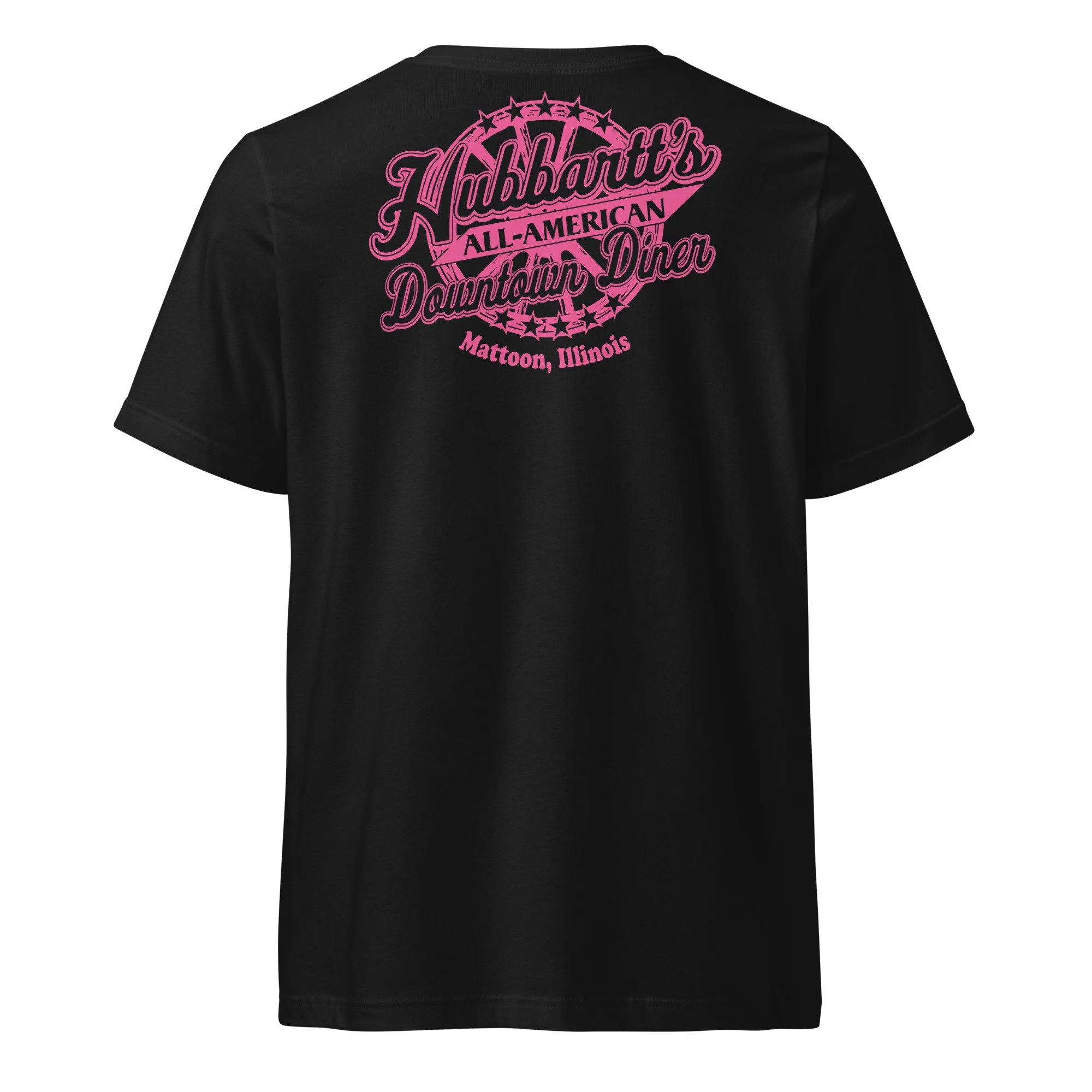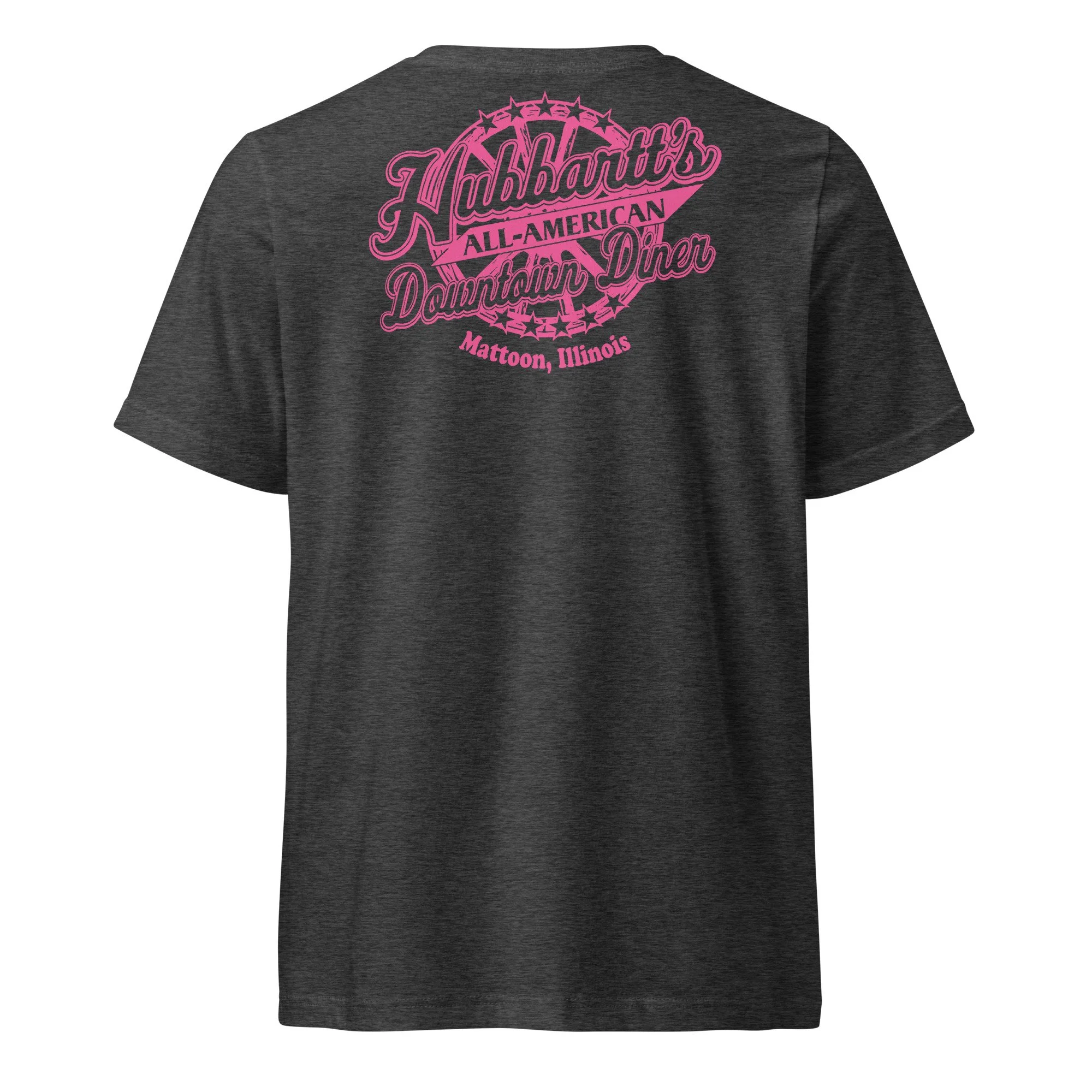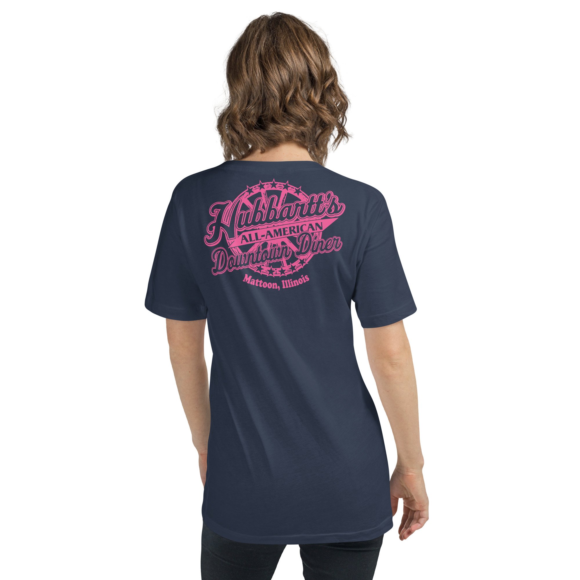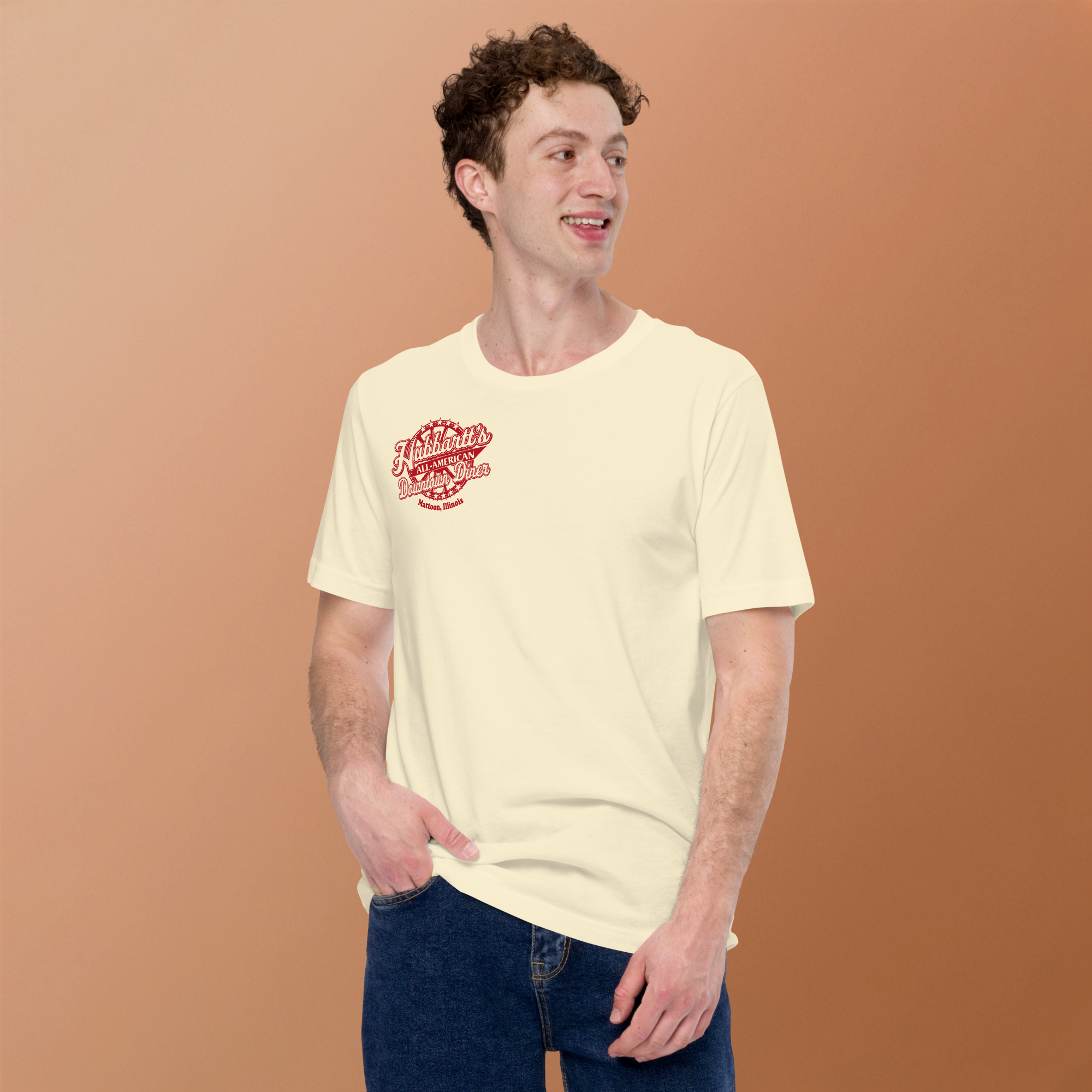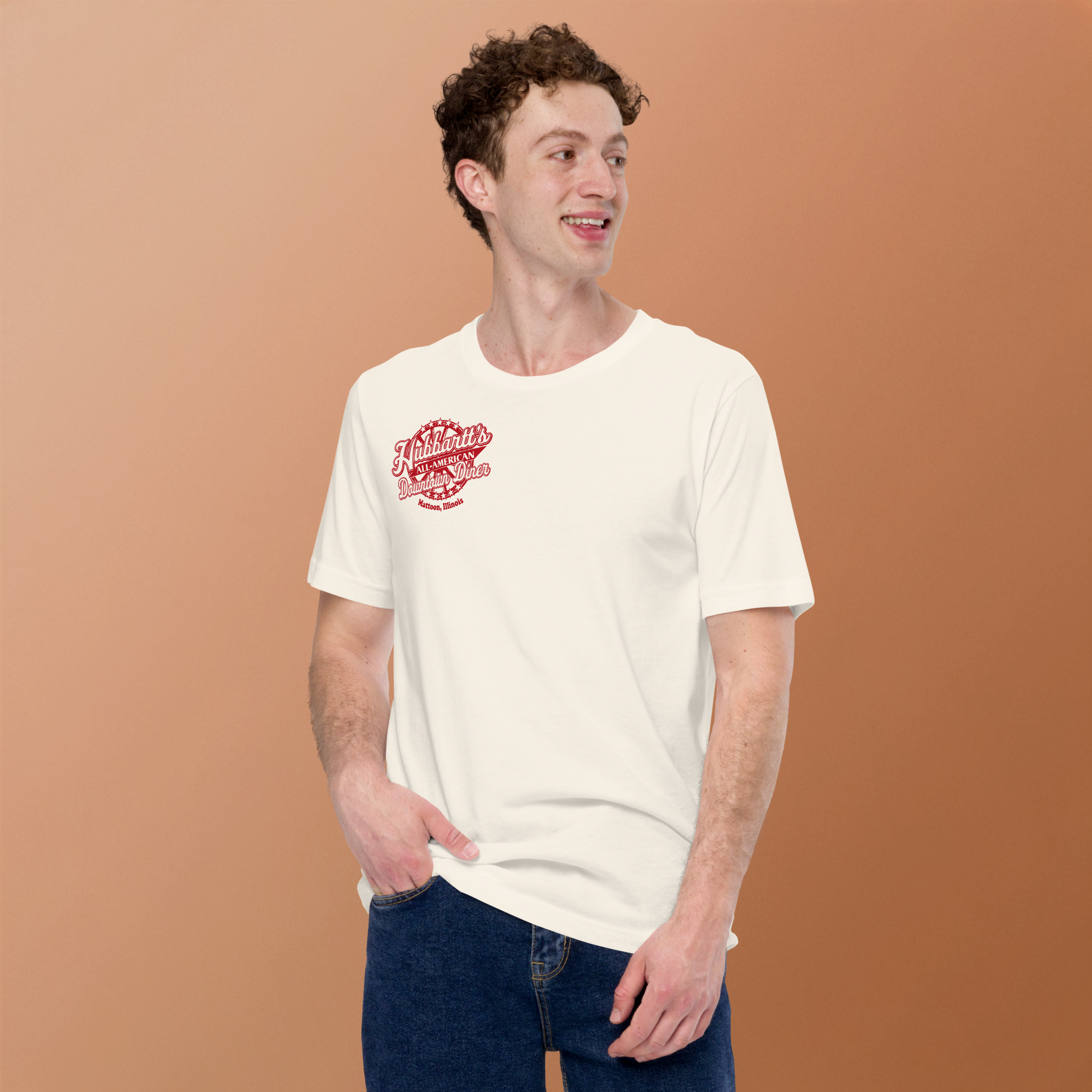 Unisex Staple T-Shirt - 12 Colors, 9 Sizes, Red Front & Back Logo - From Hubbartt's Downtown Diner at the Monarch Shoppe