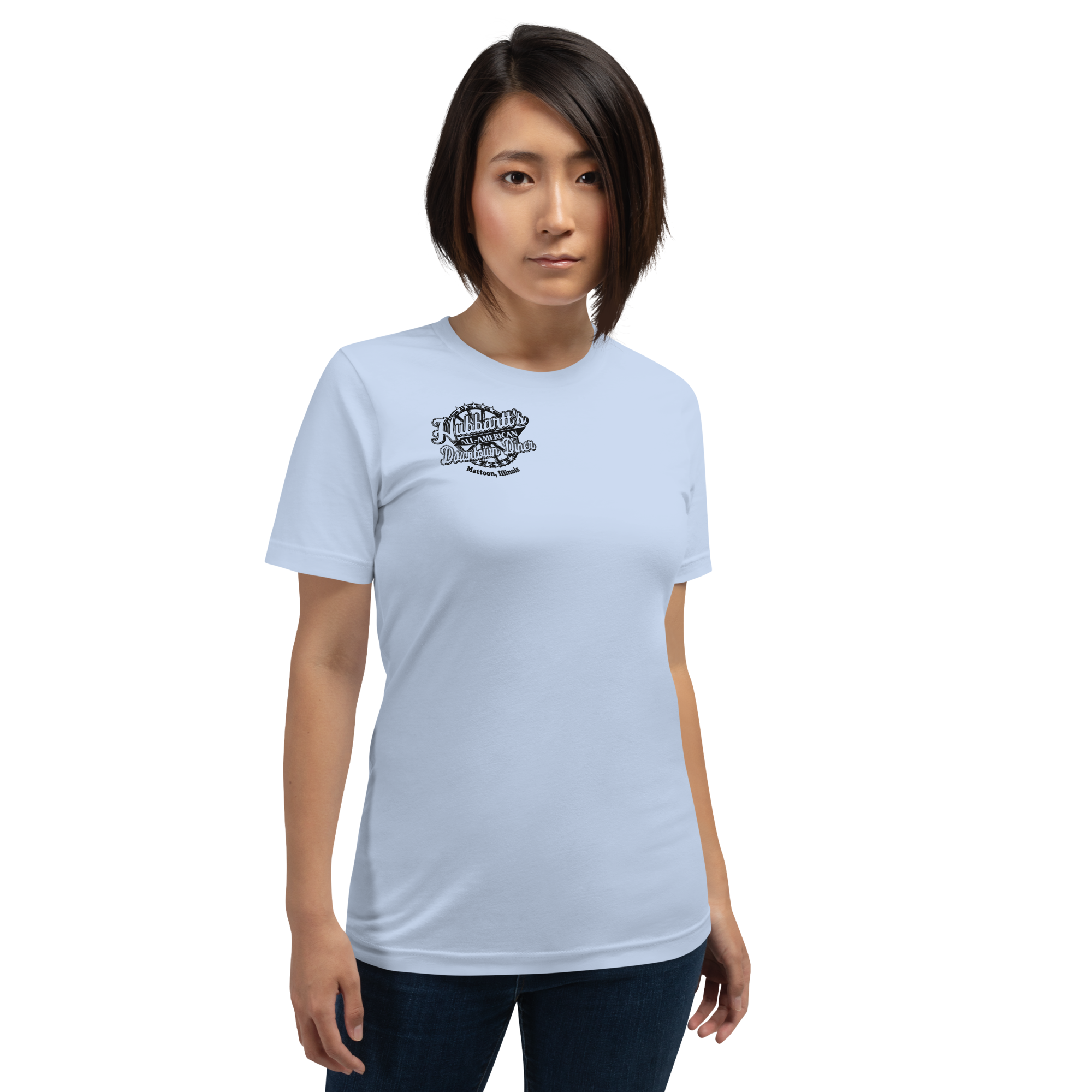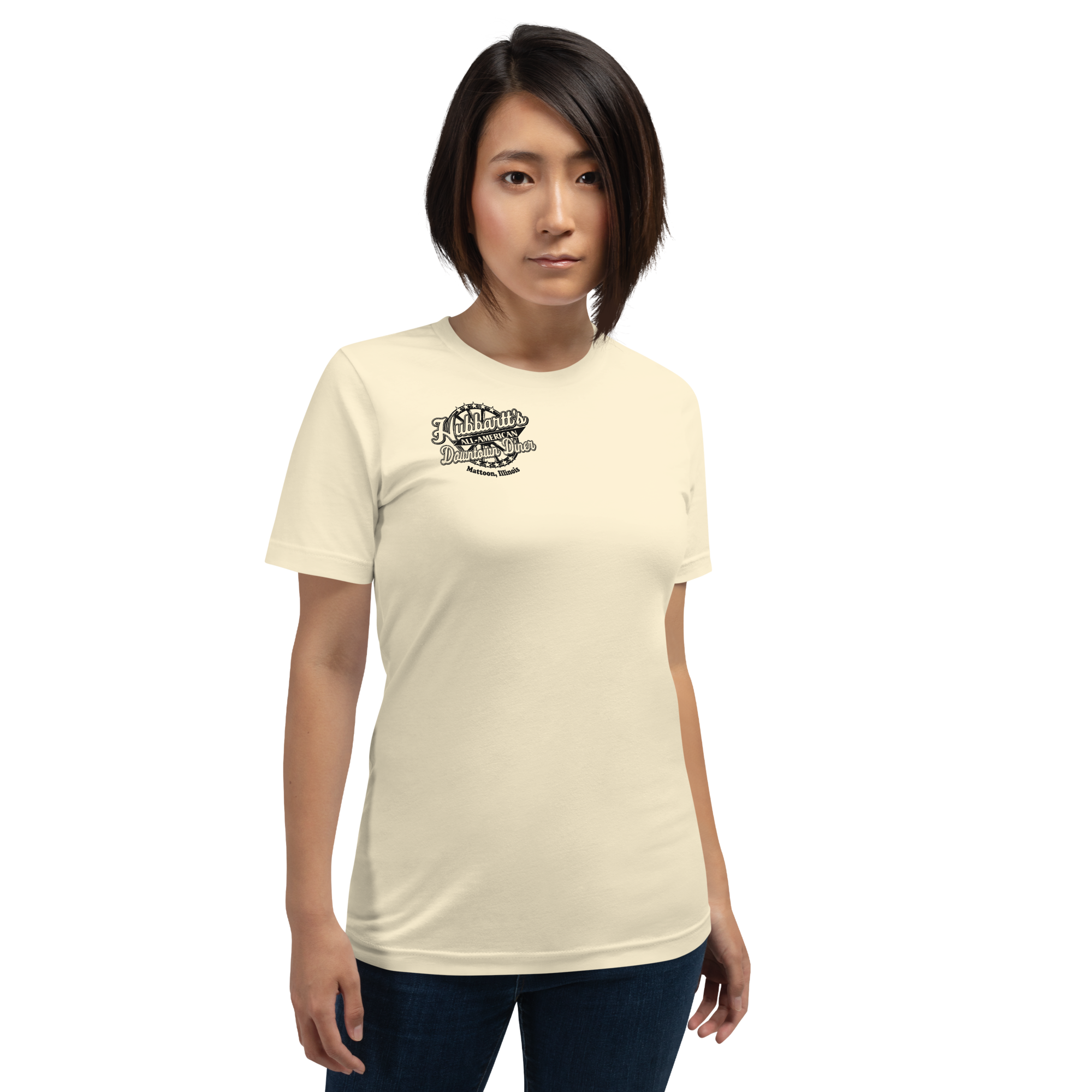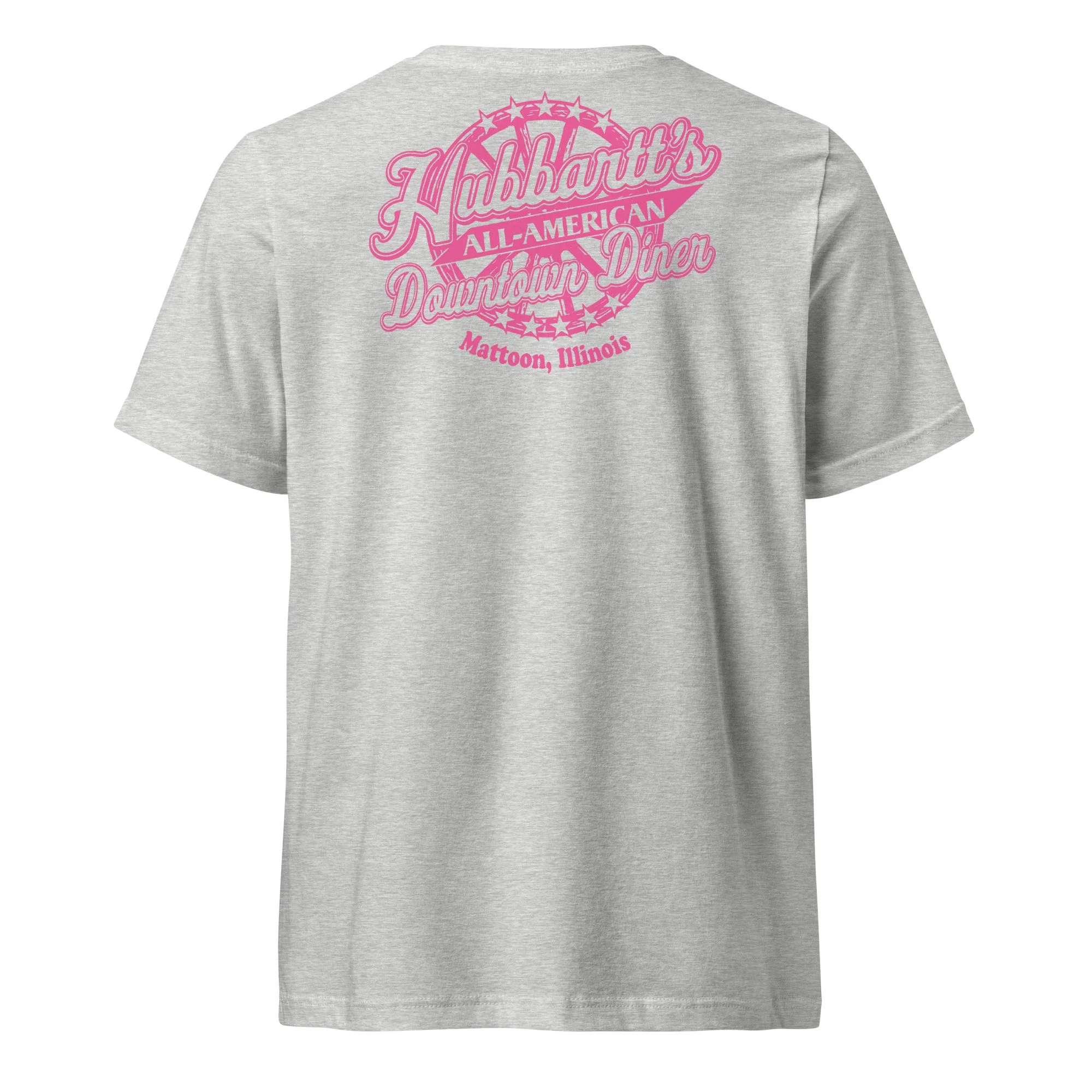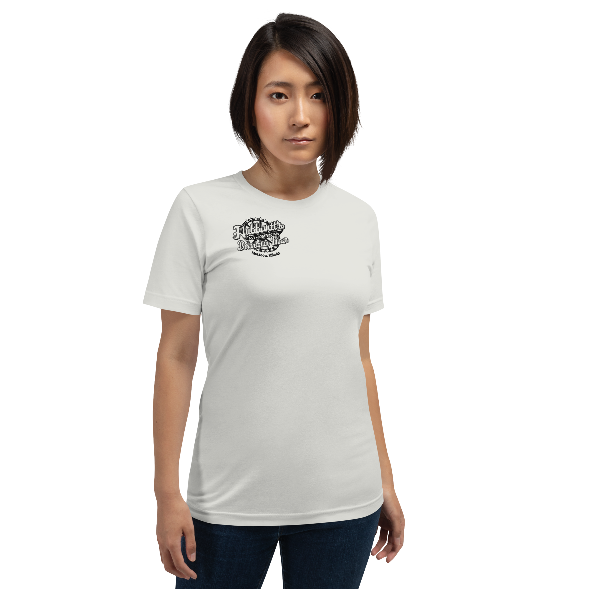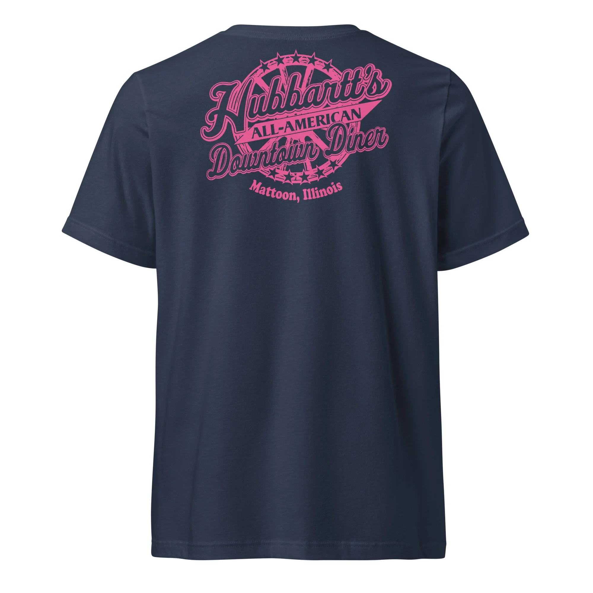 Unisex Staple T-Shirt - 12 Colors, 9 Sizes, Red Front & Back Logo - From Hubbartt's Downtown Diner at the Monarch Shoppe