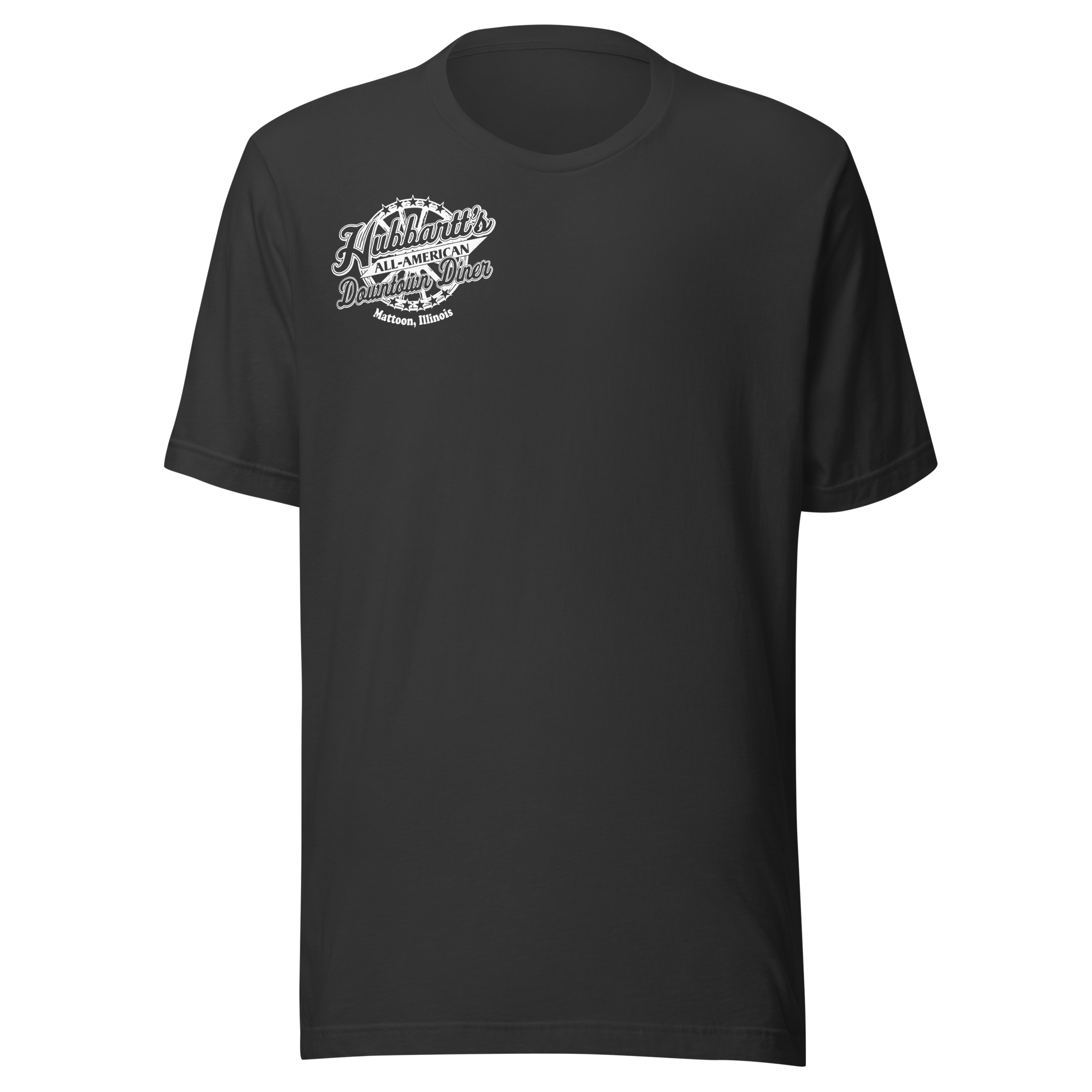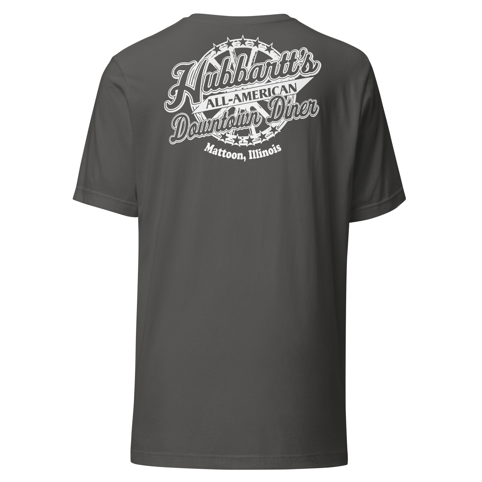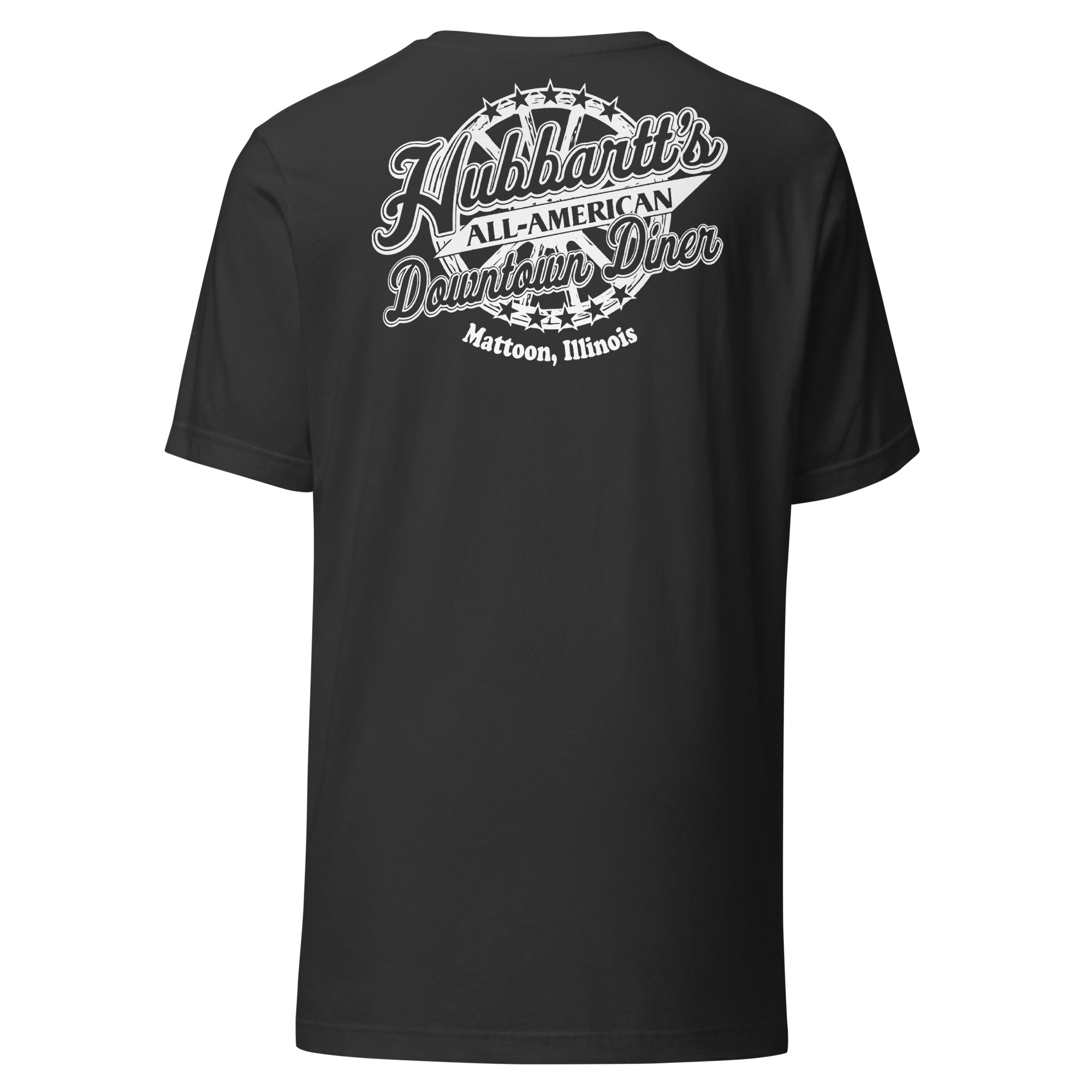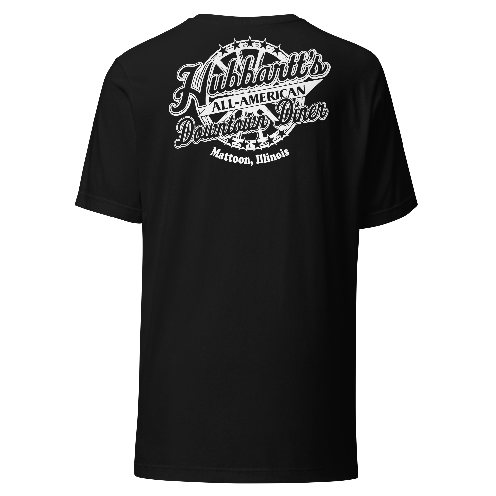 Unisex Staple T-Shirt - 12 Colors, 9 Sizes, White Front & Back Logo - From Hubbartt's Downtown Diner at the Monarch Shoppe