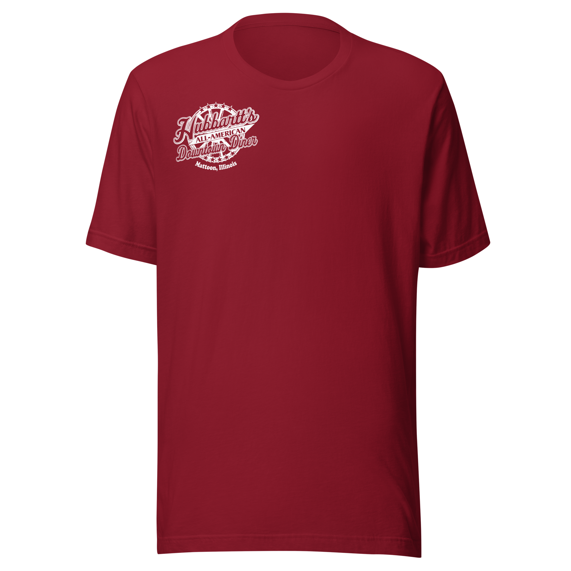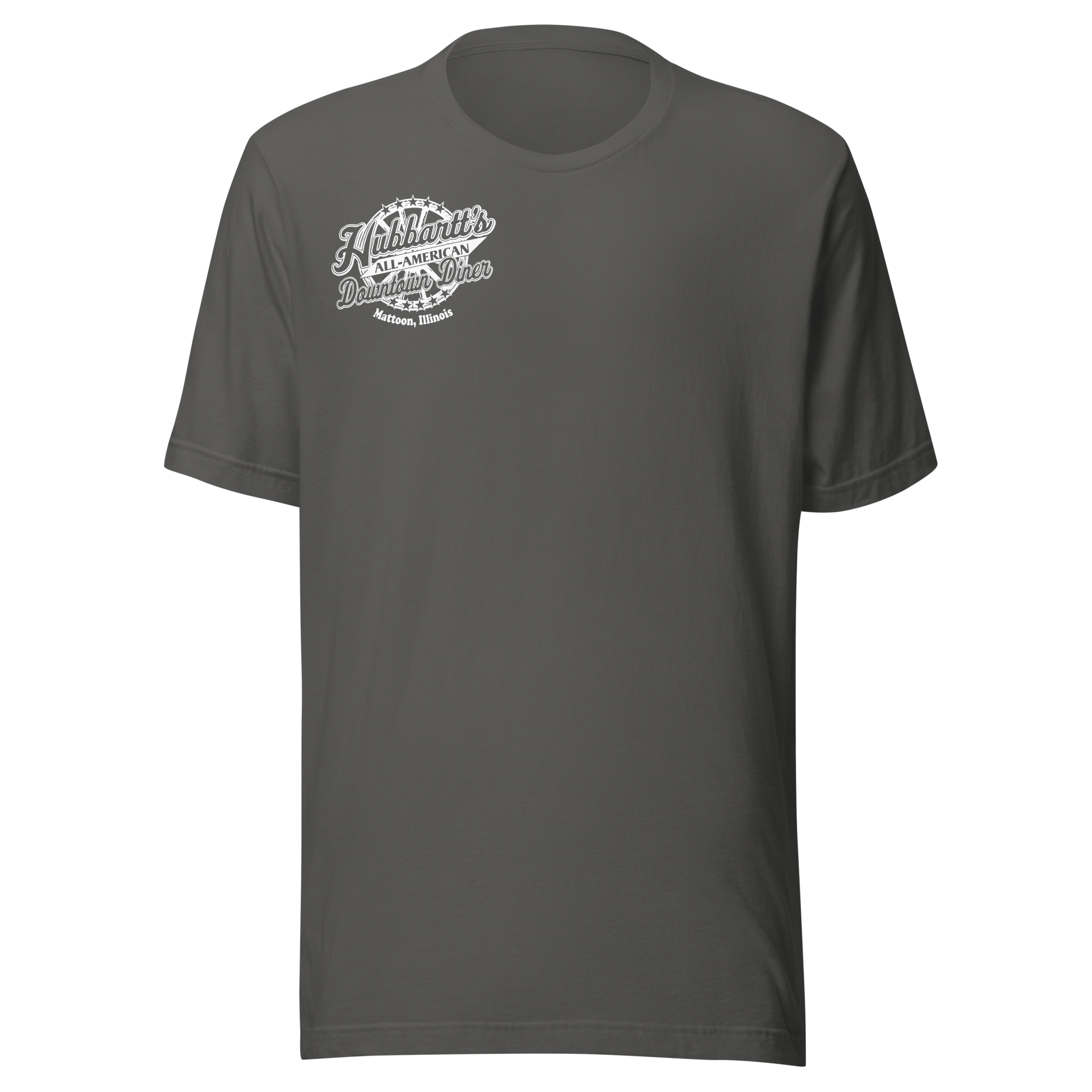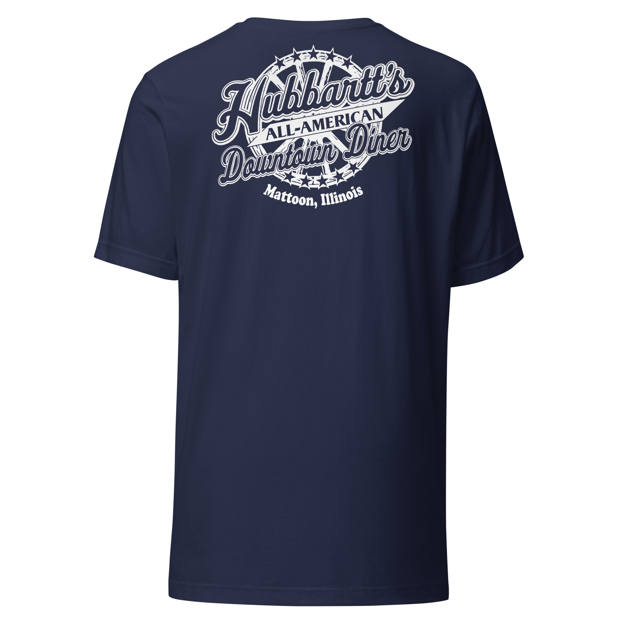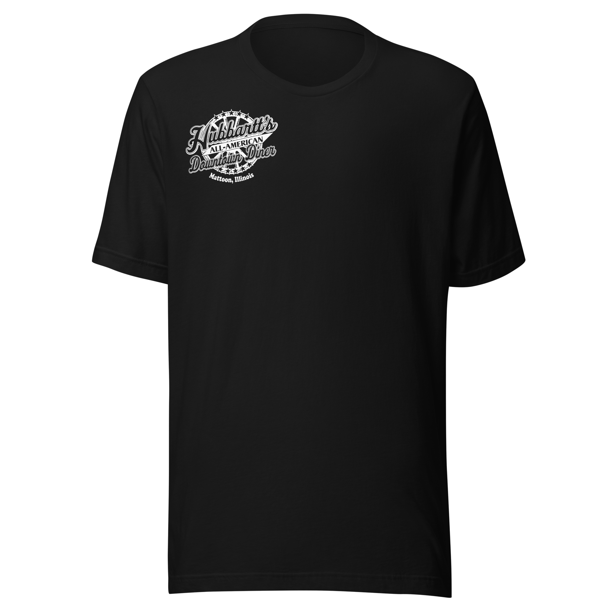 Unisex Staple T-Shirt - 12 Colors, 9 Sizes, White Front & Back Logo - From Hubbartt's Downtown Diner at the Monarch Shoppe