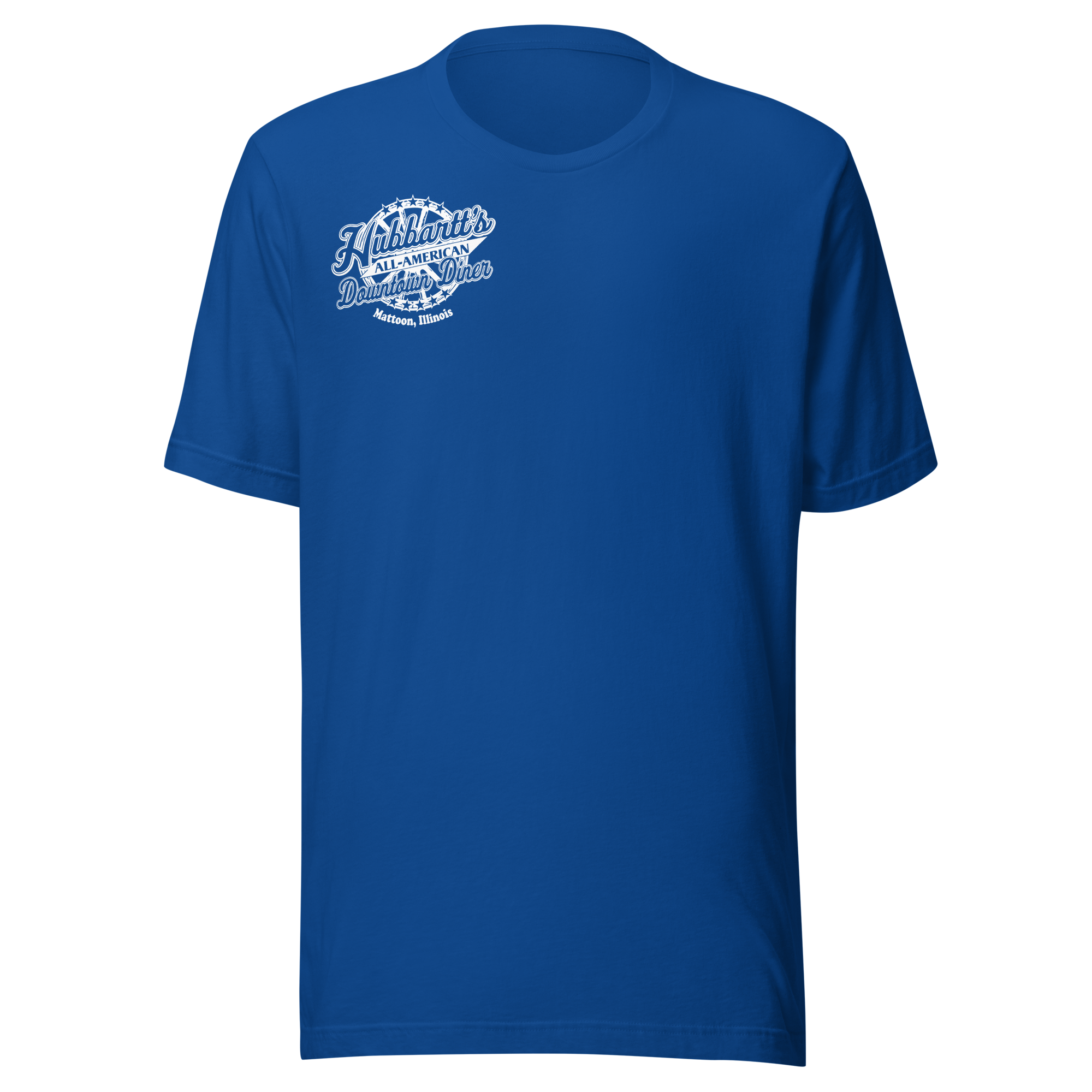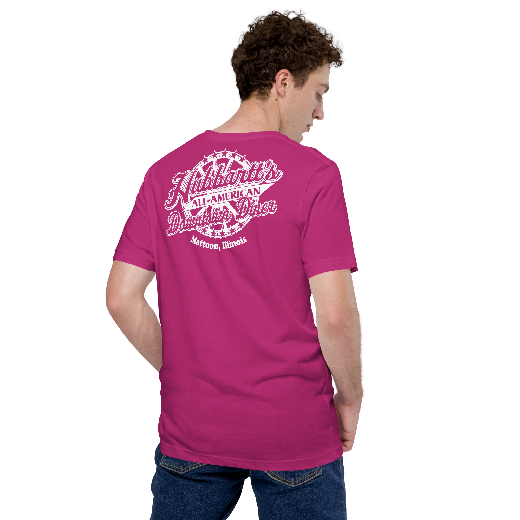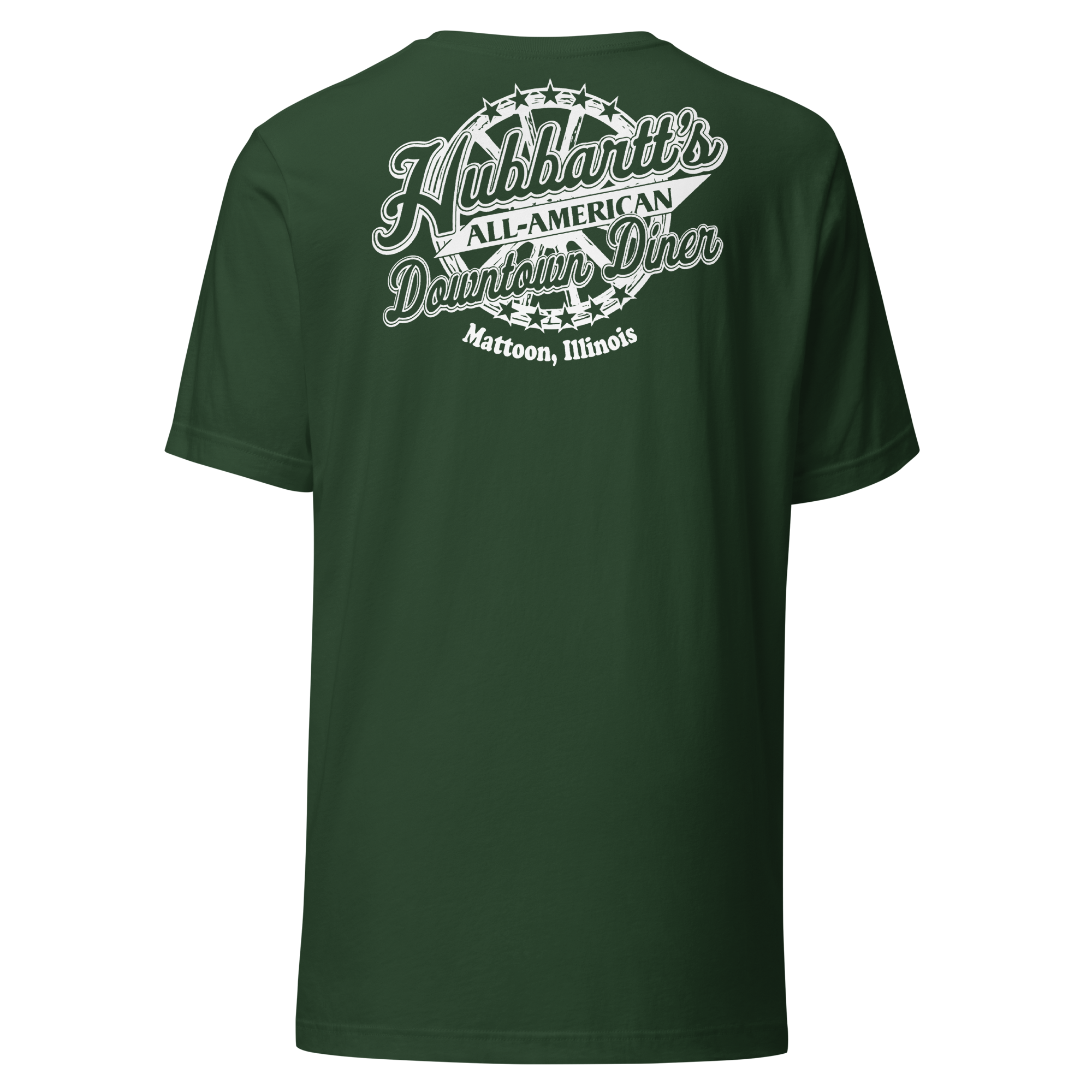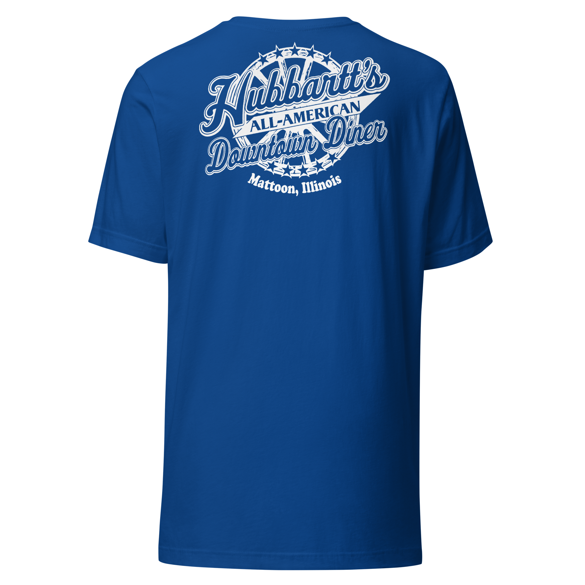 Unisex Staple T-Shirt - 12 Colors, 9 Sizes, White Front & Back Logo - From Hubbartt's Downtown Diner at the Monarch Shoppe