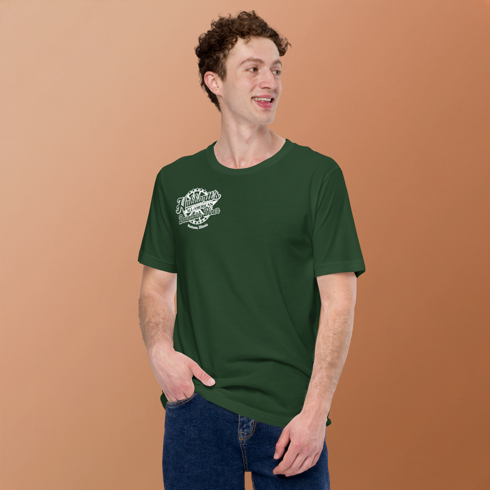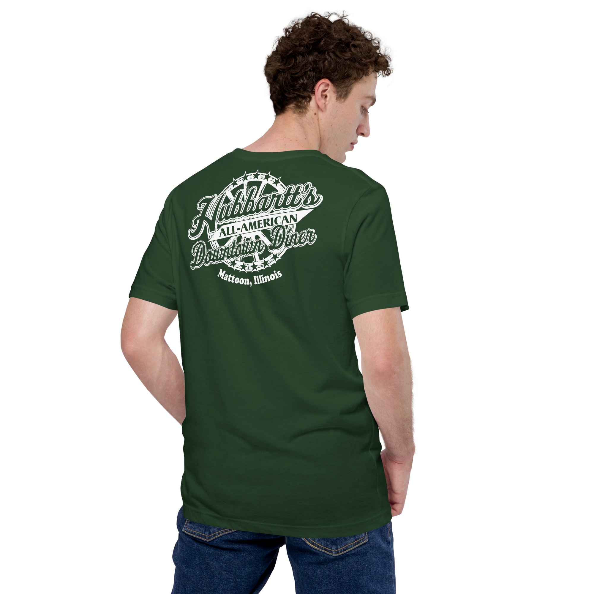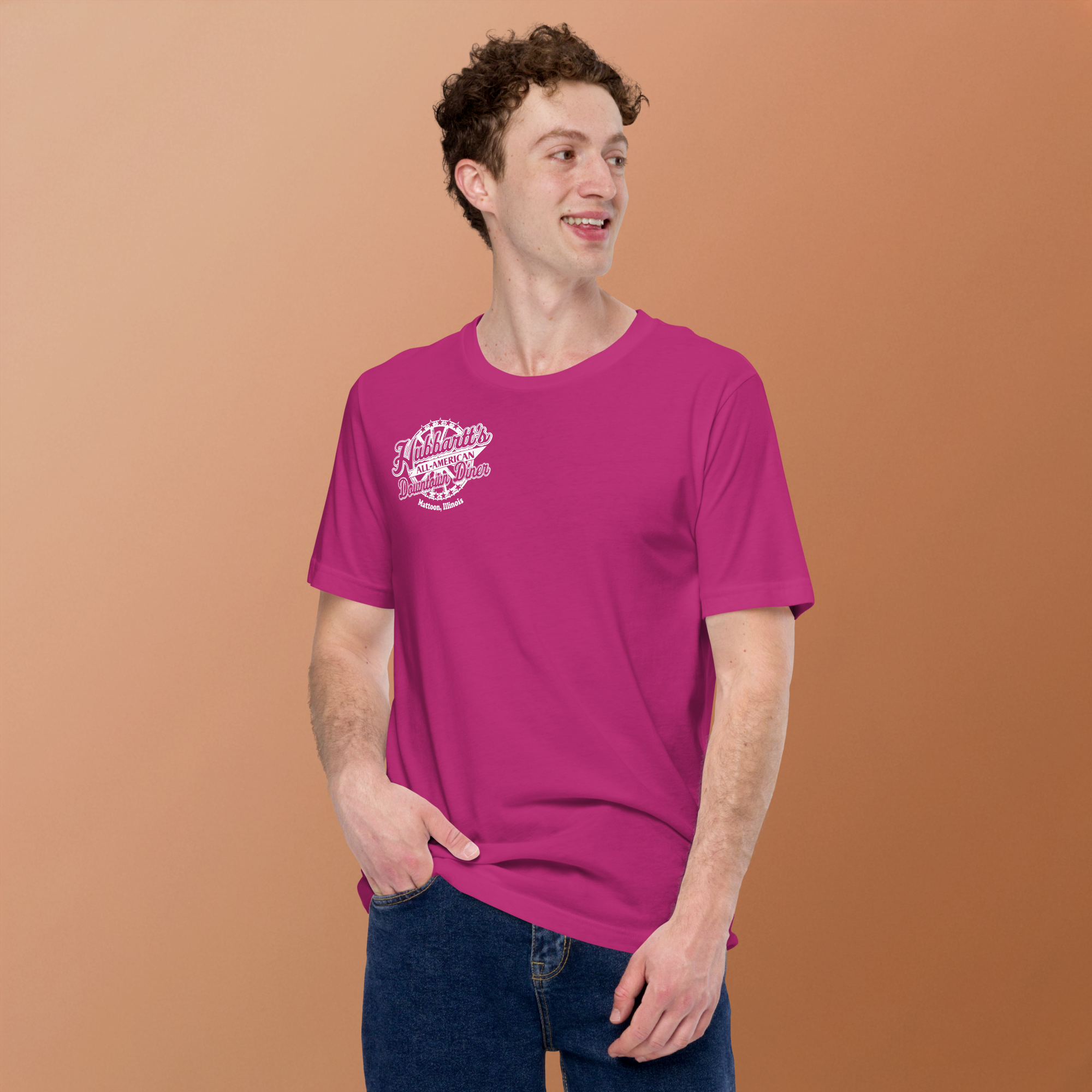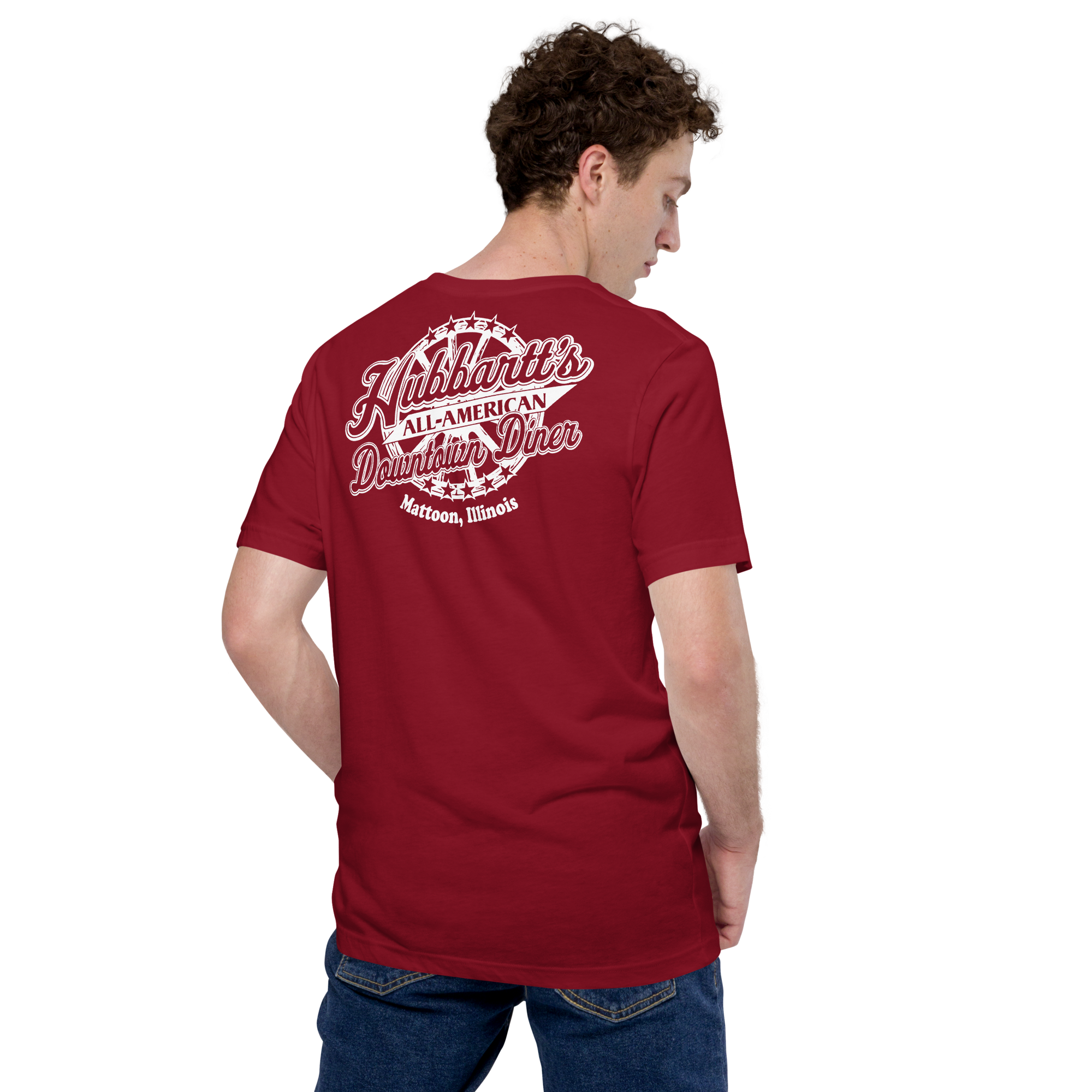 Unisex Staple T-Shirt - 12 Colors, 9 Sizes, White Front & Back Logo - From Hubbartt's Downtown Diner at the Monarch Shoppe