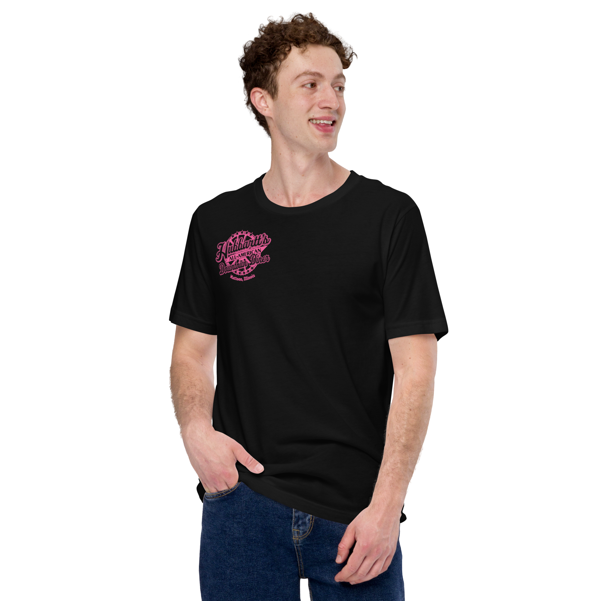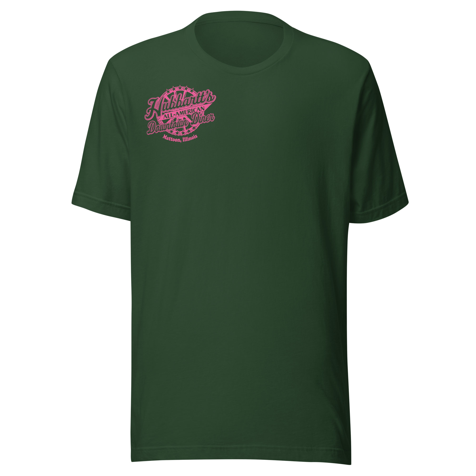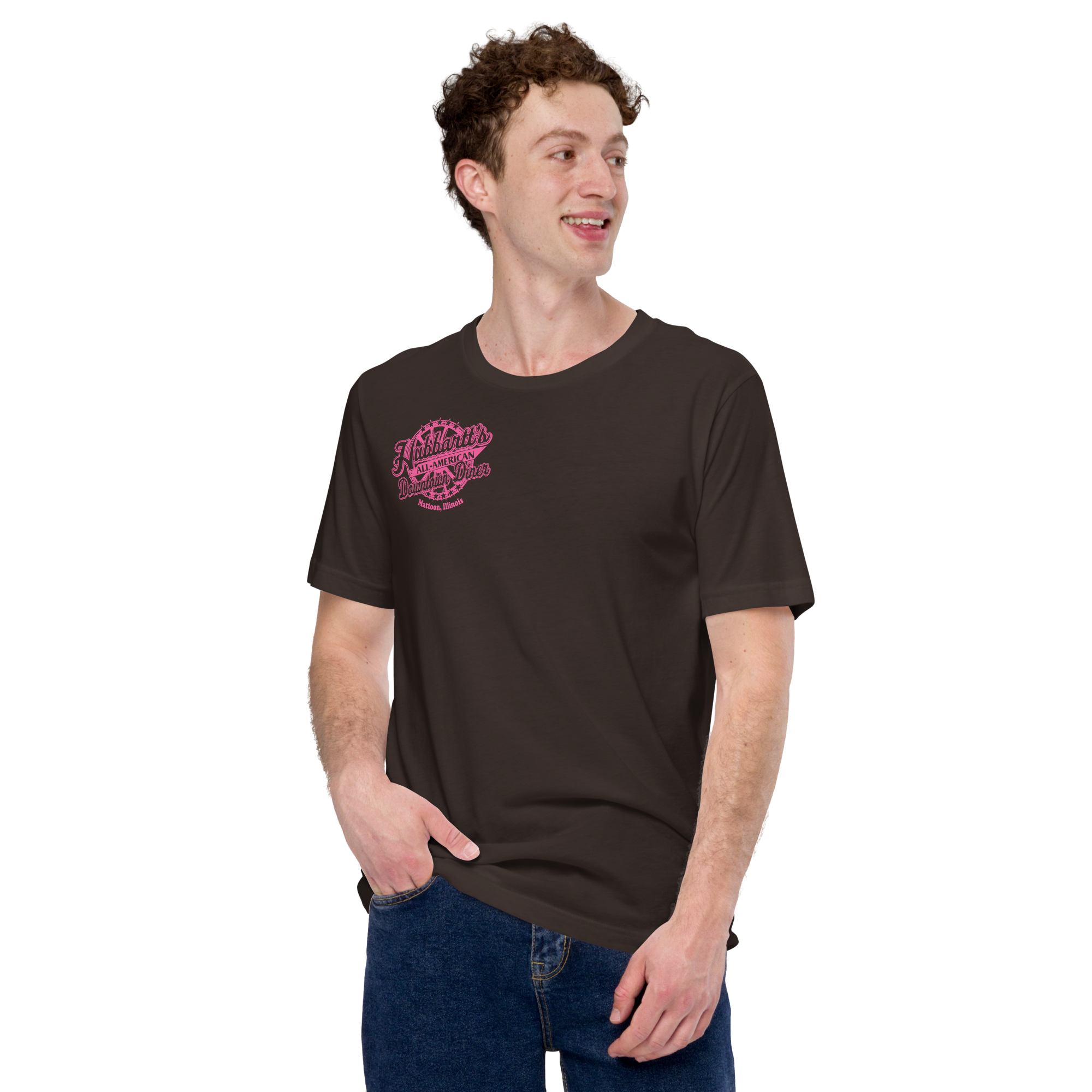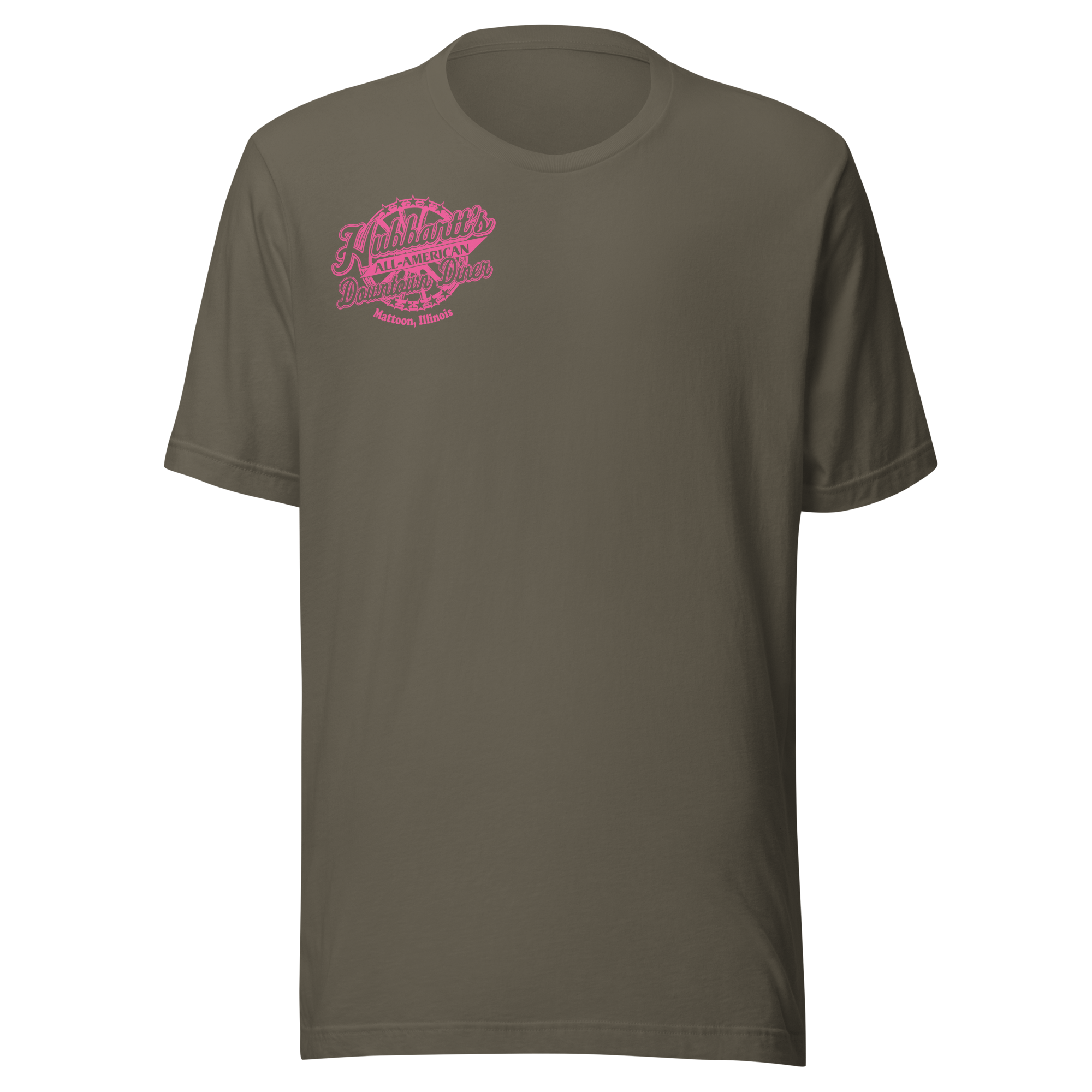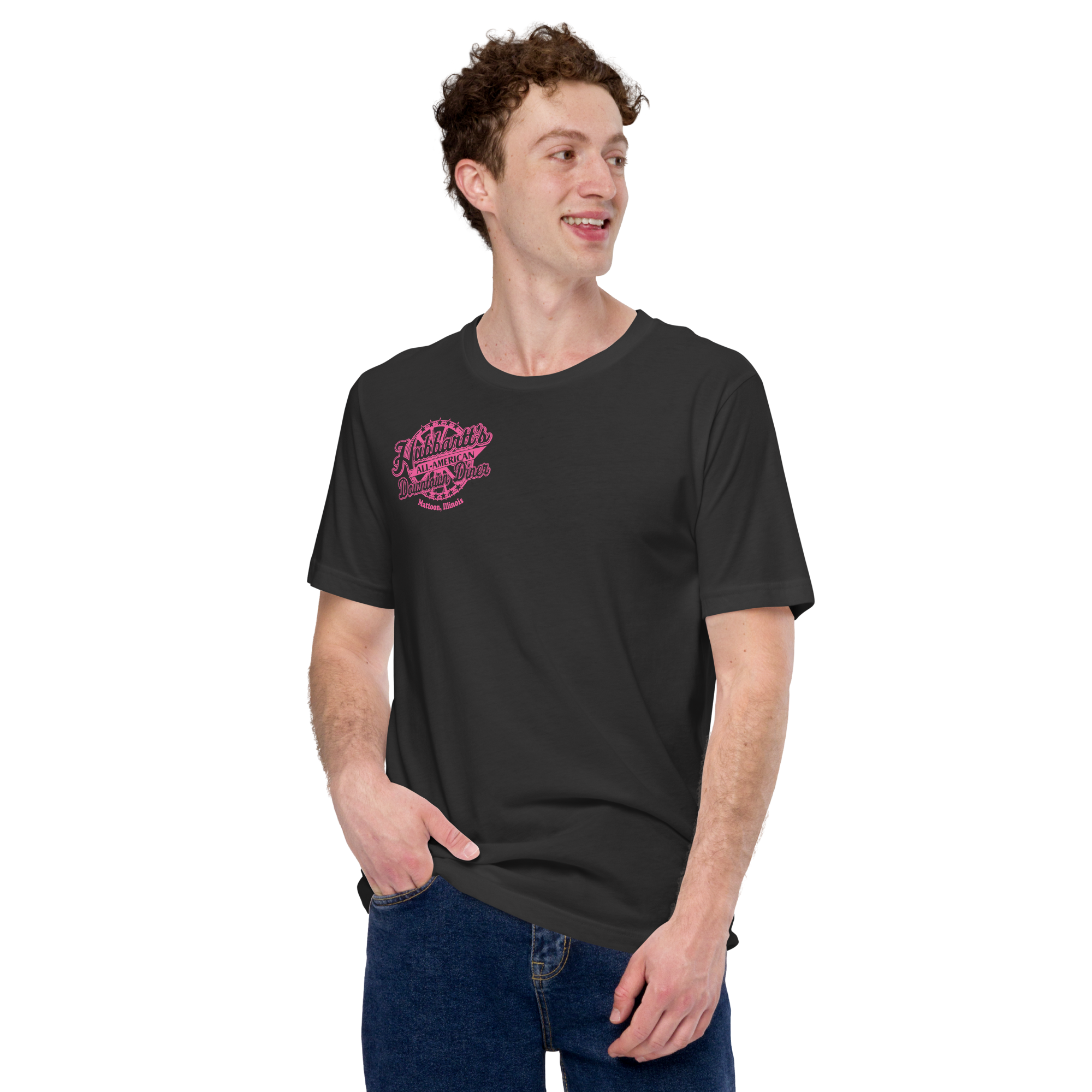 Unisex Staple T-Shirt - 13 Colors, 9 Sizes, Pink Front & Back Logo - From Hubbartt's Downtown Diner at the Monarch Shoppe