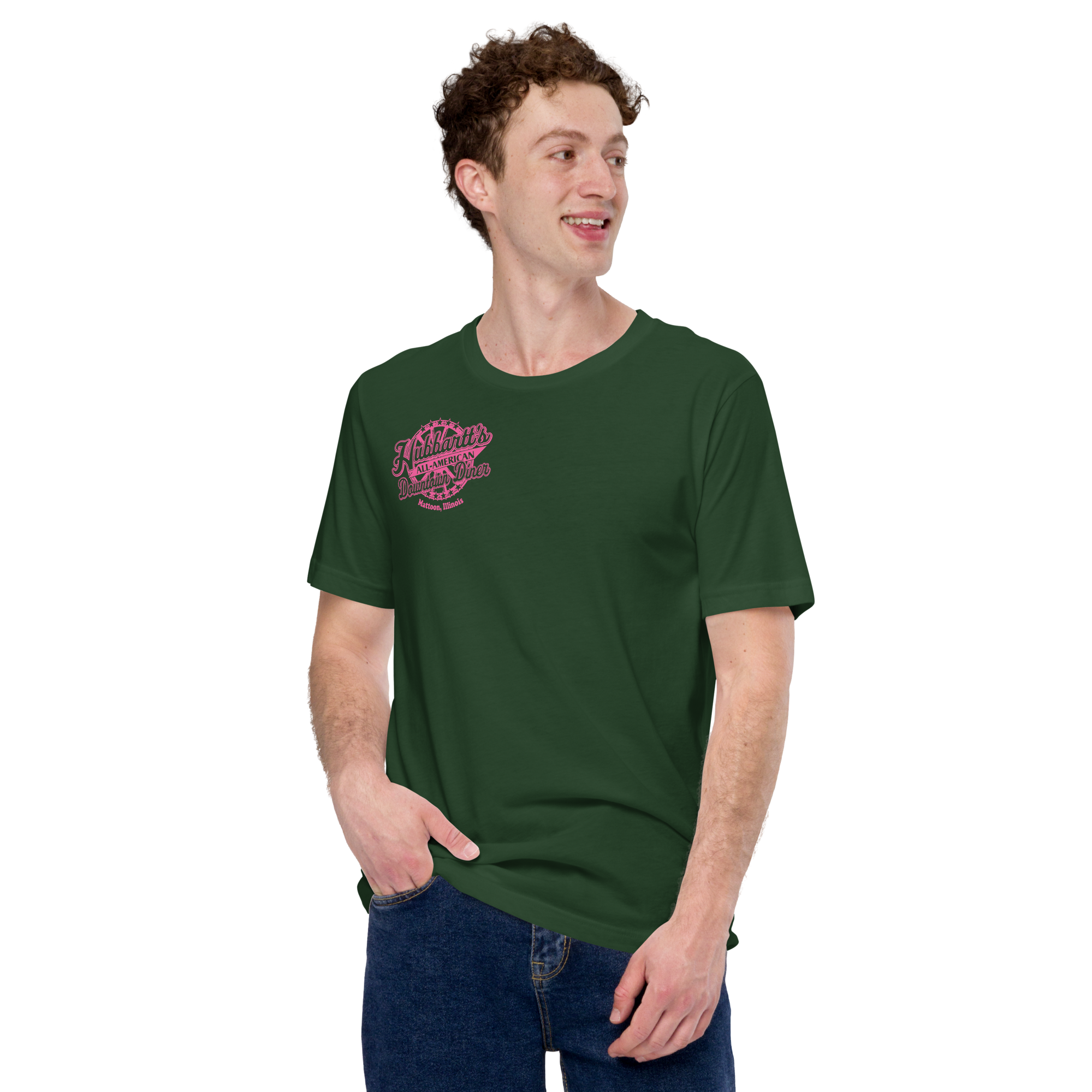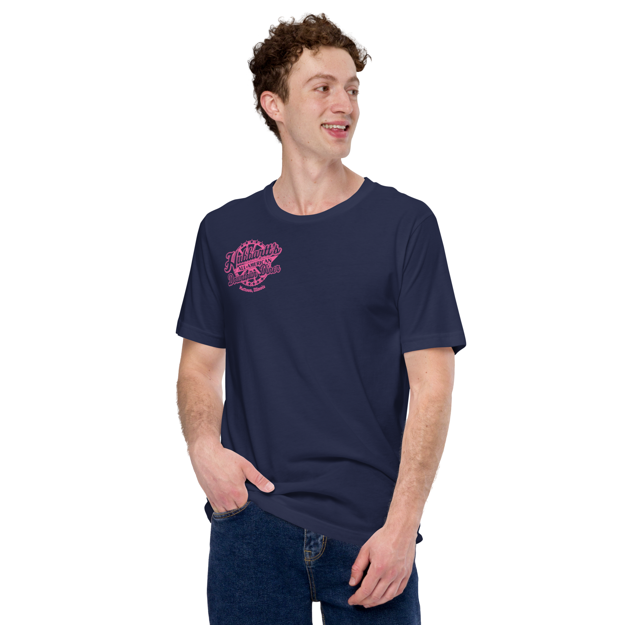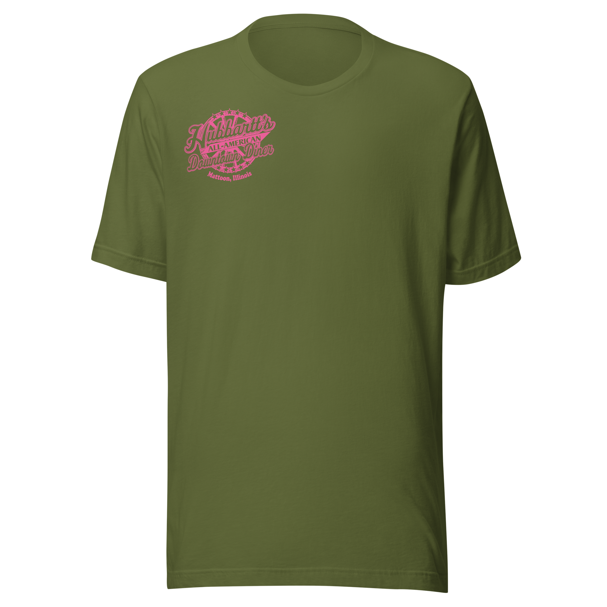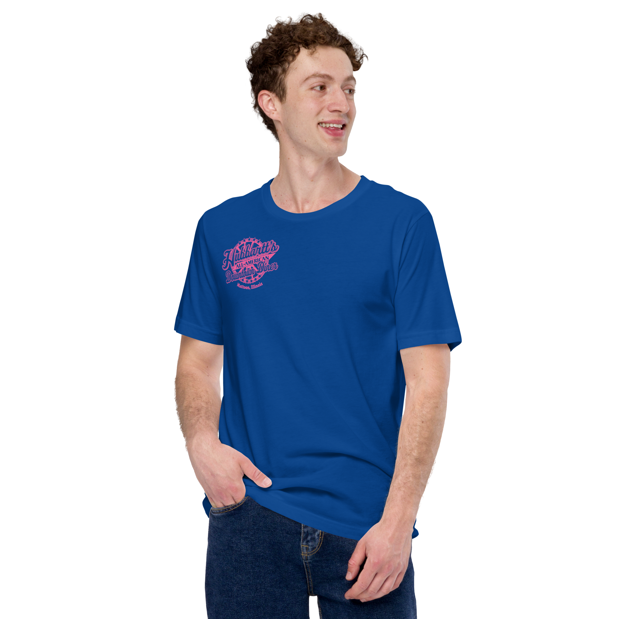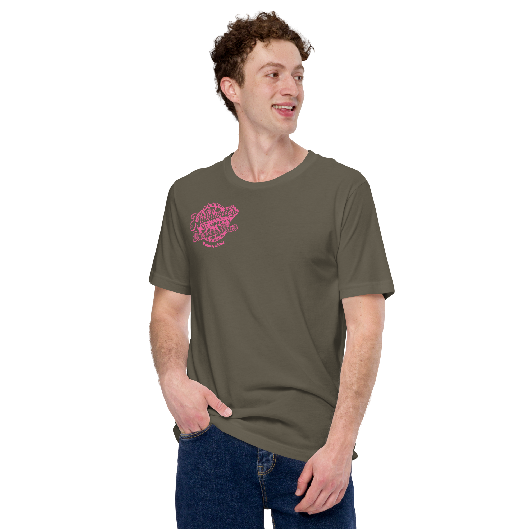 Unisex Staple T-Shirt - 13 Colors, 9 Sizes, Pink Front & Back Logo - From Hubbartt's Downtown Diner at the Monarch Shoppe